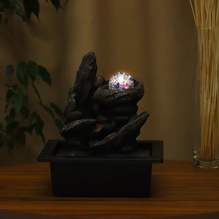 Создайте уникальную атмосферу в вашем доме с помощью стильного фонтана, который не только украсит пространство, но и принесет умиротворение. Фонтан в формате каменных скал, размером 18×25 см, станет ярким акцентом вашей комнаты, благодаря подсветке, которая придаёт ему особый шарм в вечернее время.