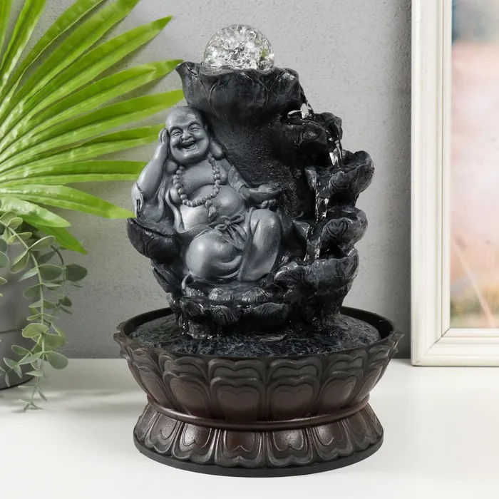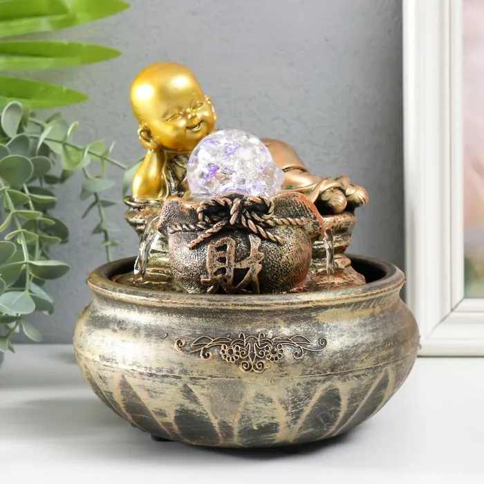 Фонтан настольный с подсветкой "Маленький Будда с мешком" 16х16х18 см