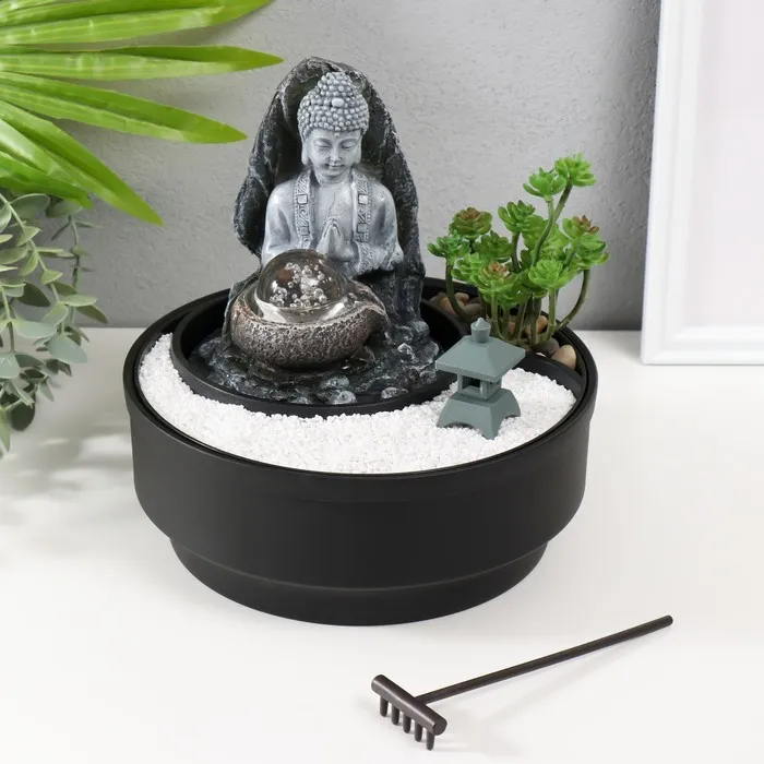 Фонтан настольный, японский сад камней «Будда в саду Дзен», от сети с подсветкой, 21×21×21 см