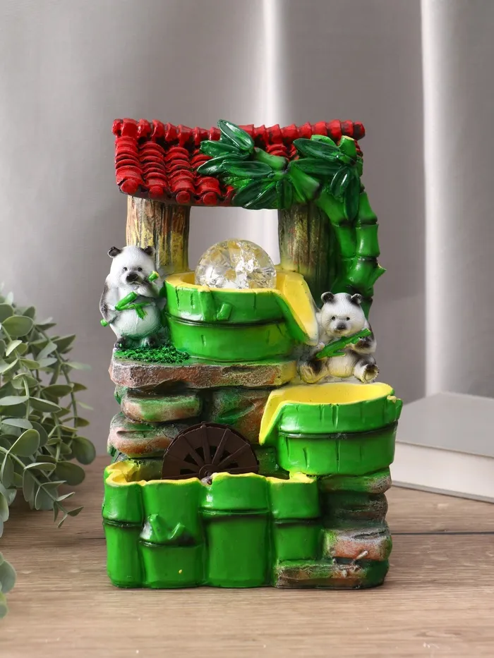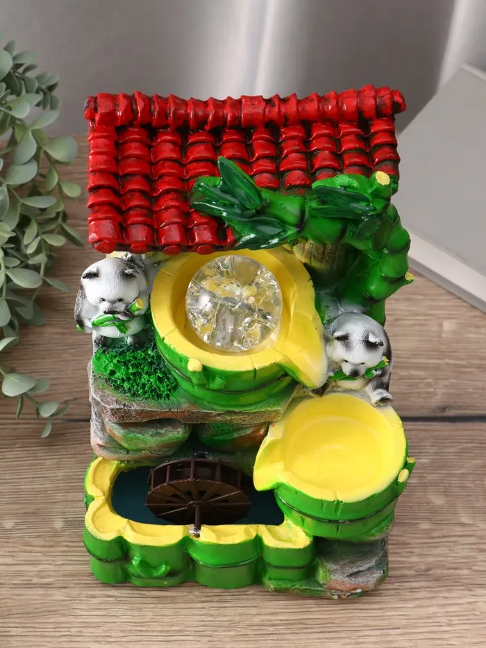 Фонтан "Панды под крышей" 25,5х17х14 см (с подсветкой)