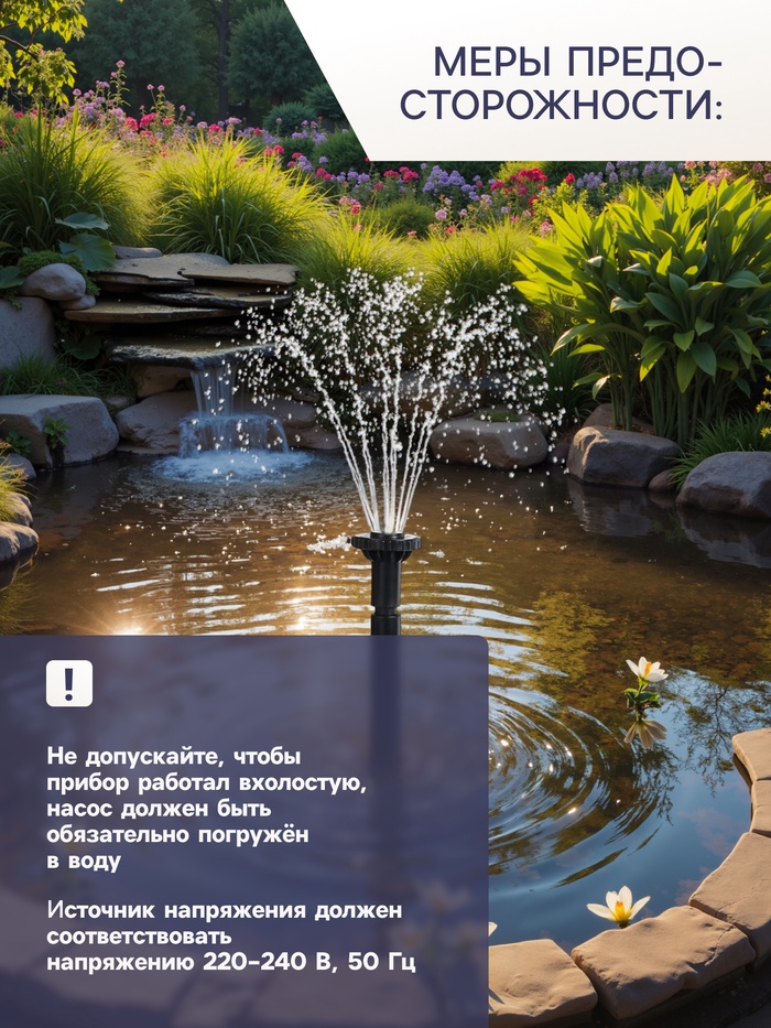 - Простая установка. Фонтан очень легко установить, нужно только погрузить его в водоём и подключить к сети.