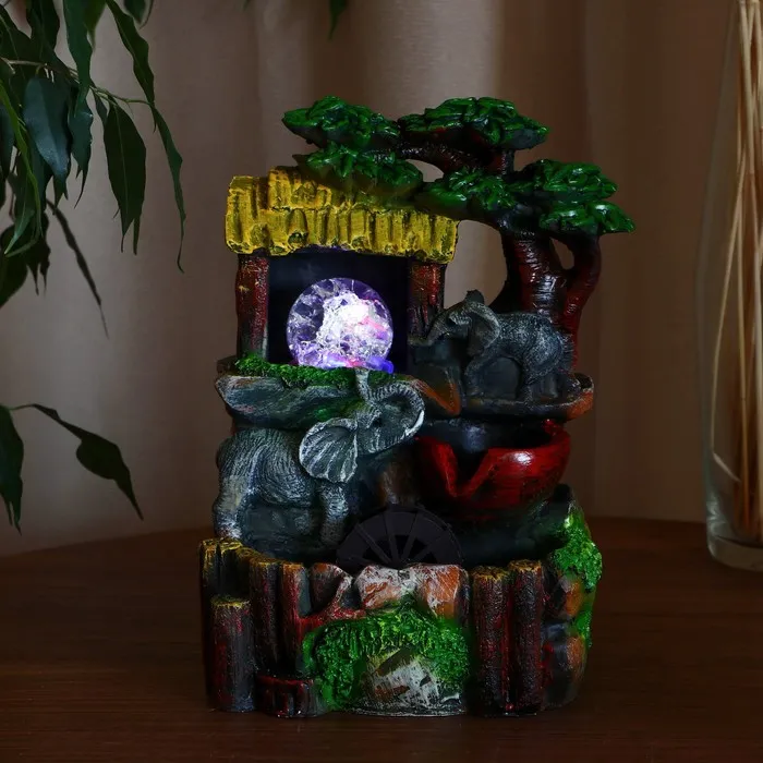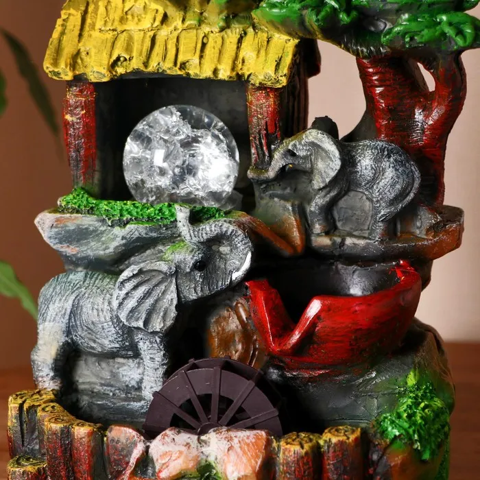 Фонтан "Слоны под крышей у деревьев" 17х13х26 (с подсветкой) — Характеристики