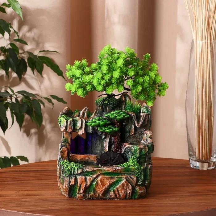 - Эффектная подсветка: благодаря встроенной подсветке, водопад будет радовать вас нежным светом, создавая уютный и расслабляющий вечерний антураж. Это идеальное решение для медитации или расслабления после долгого дня.