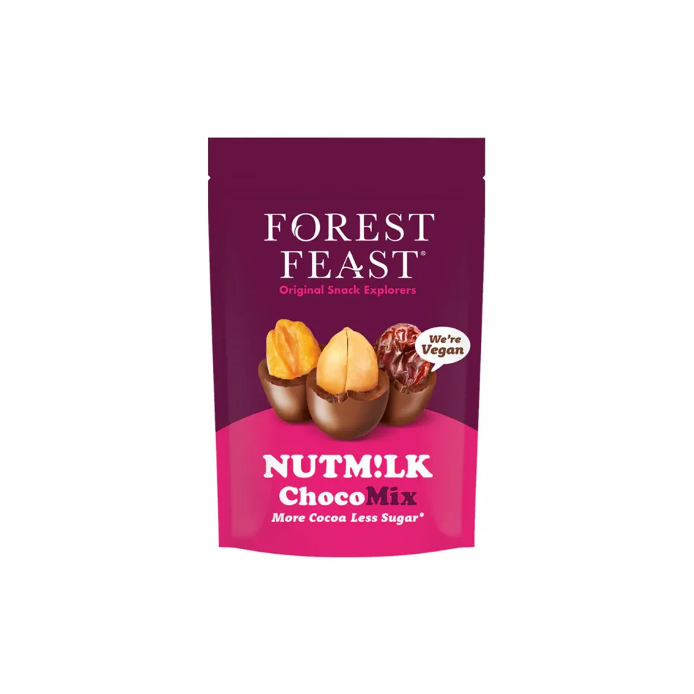 Десятилетия опыта работы с фруктами и орехами помогли Forest Feast создать легендарный перекус 'NutM!lk ChocoMix'! В составе отсутствуют молочные продукты, вместо них используются насыщенные миндалины. Смесь включает сладко-соленый и хрустящий микс обжаренного арахиса, хрустящей кукурузы и сочного изюма, покрытого вкусным растительным шоколадом!