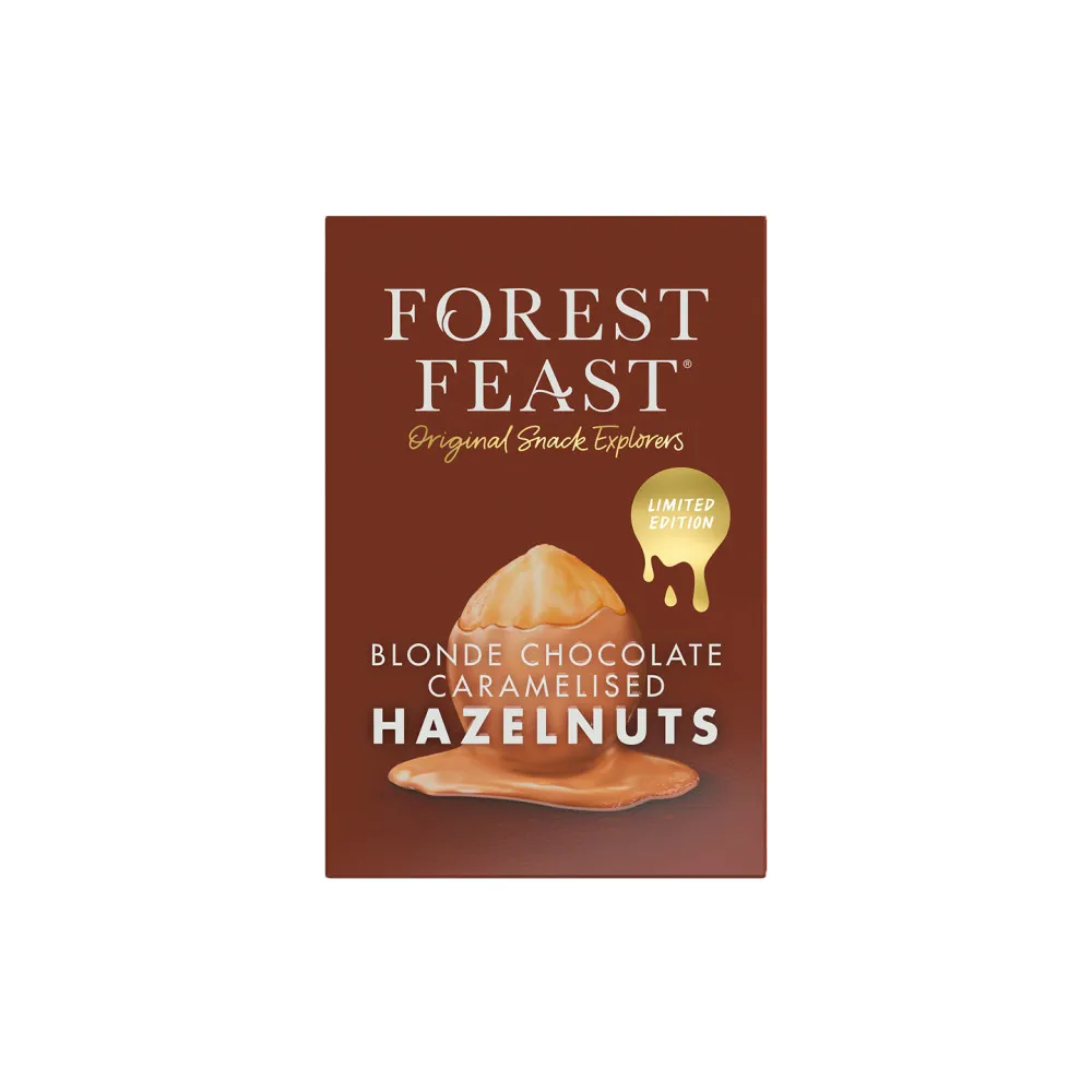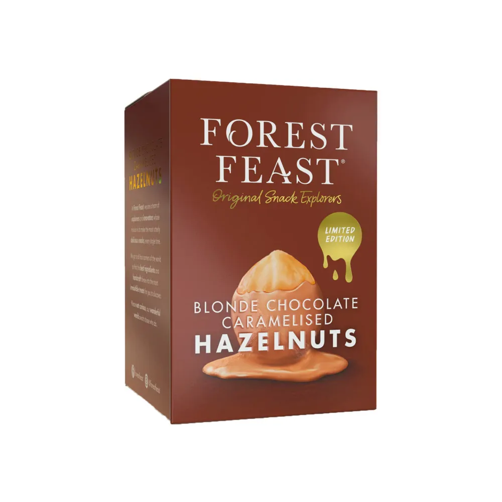Лесные орехи Forest Feast обжарены и покрыты хрустящей карамельной глазурью, затем погружены в насыщенный белый бельгийский шоколад с нотками ириски и печенья.