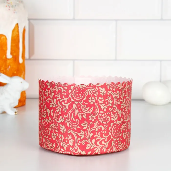 Форма бумажная для кекса, маффинов и кулича «Флора красная», 124×90 мм — Характеристики