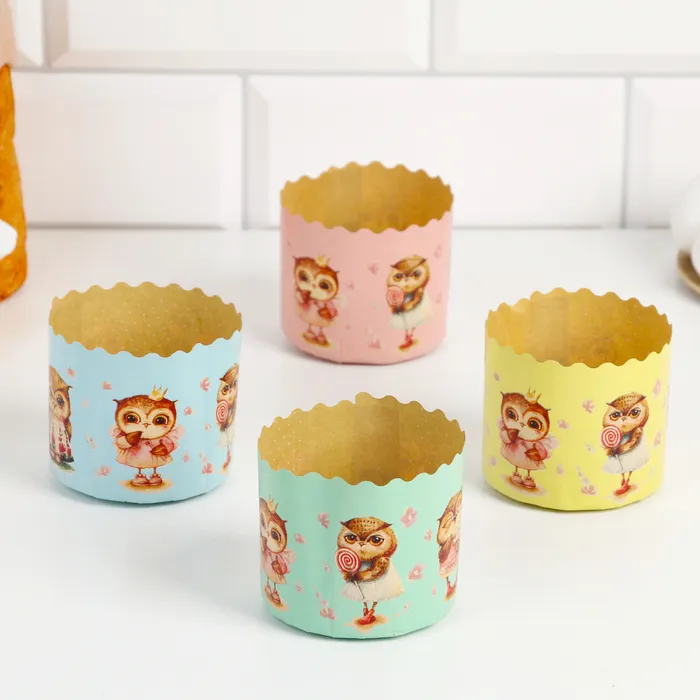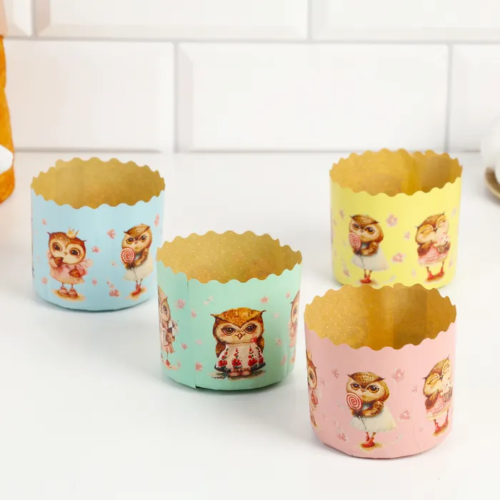 Форма бумажная для кекса, маффинов и кулича «Совушки», 70×60 мм, МИКС — Характеристики