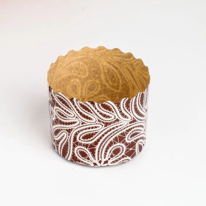 Форма бумажная для кулича Деко-про «Русское кружево», 6×4.5 см, коричневая — Характеристики