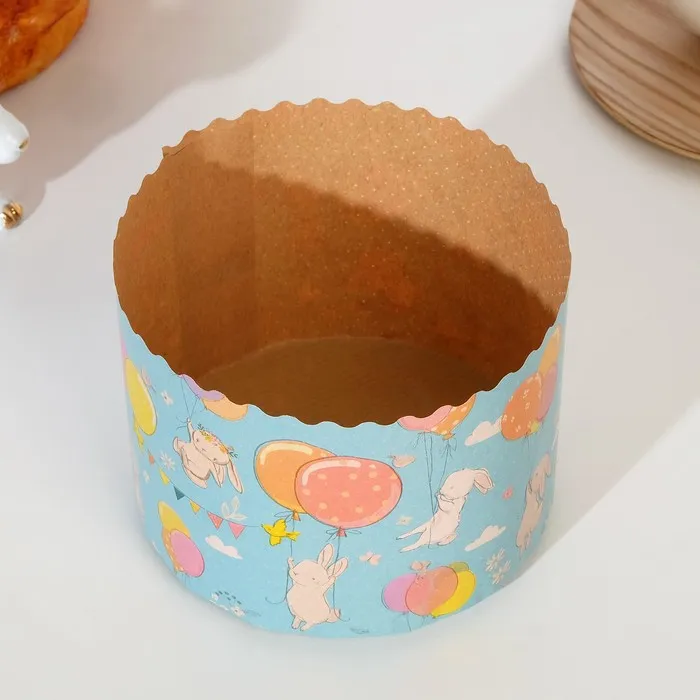 Форма бумажная для кулича Деко-про «Зайцы на шарах», 12.4×9 см, голубая — Характеристики