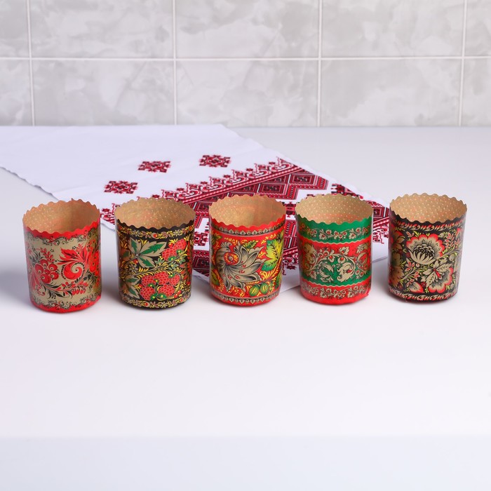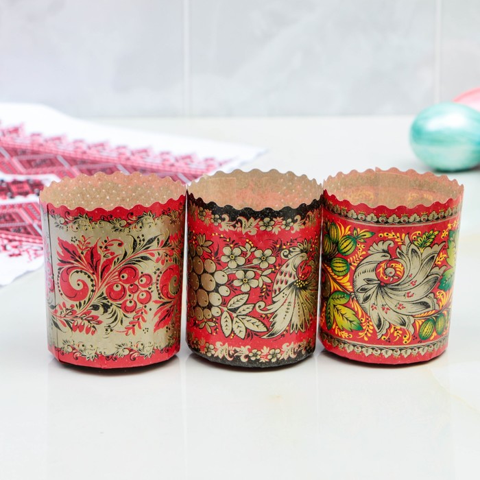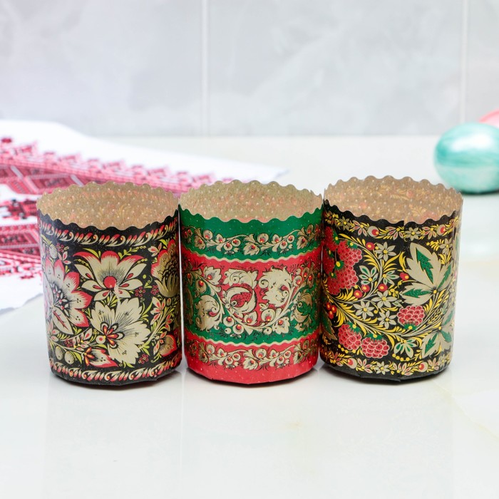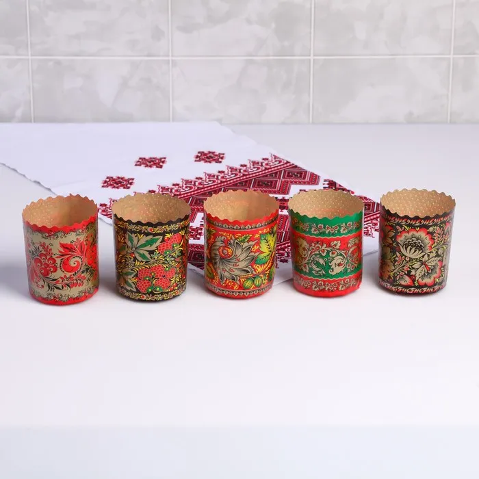 Форма бумажная для кулича «Хохлома», 70×85 мм, МИКС — Характеристики