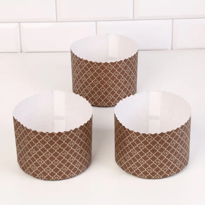 Представляем вашему вниманию бумажные формы для кулича "ХВ Новая", выполненные в коричневых и золотистых тонах с тематическим рисунком. эти формы создадут праздничное настроение и придадут вашей выпечке традиционный вид.