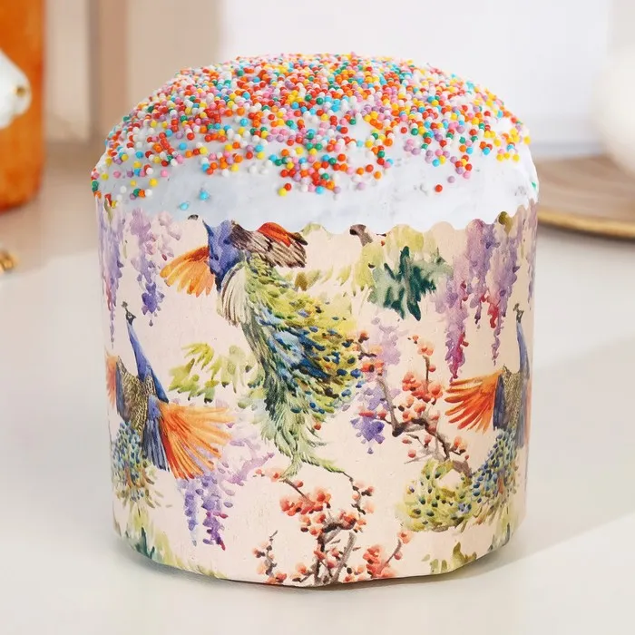Форма бумажная для кулича «Павлины», 70×60 мм — Характеристики
