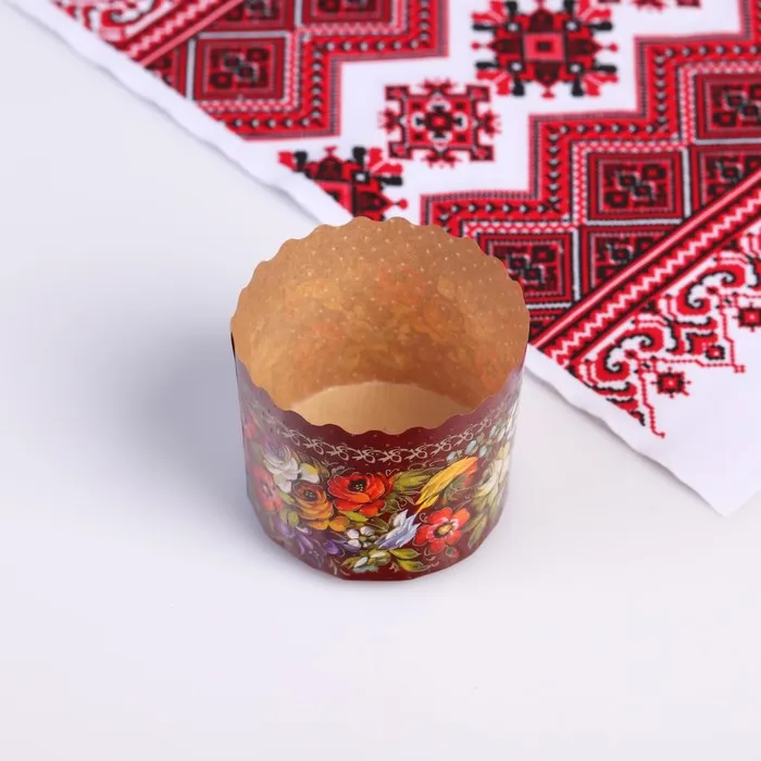 Форма бумажная для кулича «Жостово», 7×6 см, МИКС — Характеристики