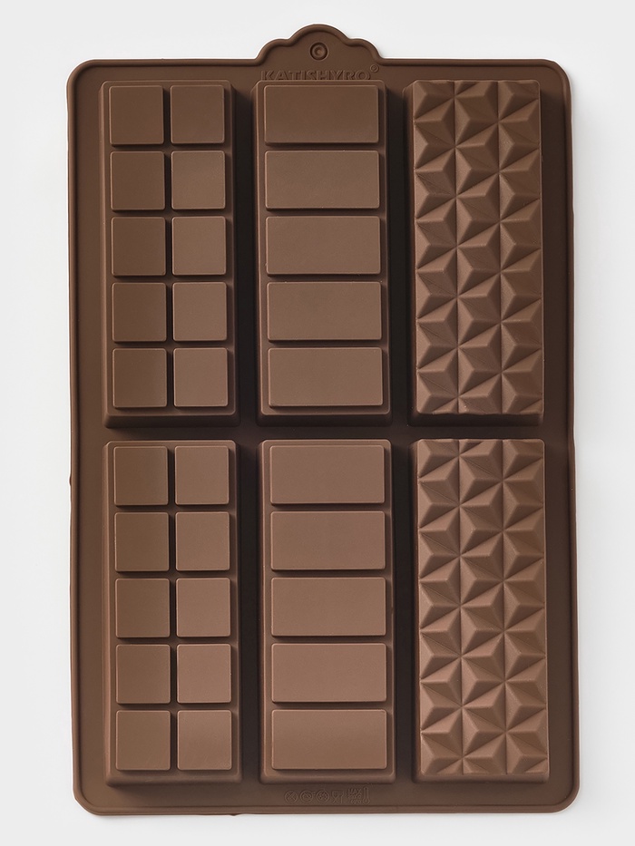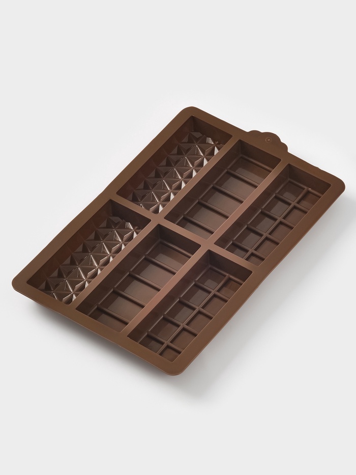 Форма для дубайского шоколада Доляна «Квадраты, полосы, пирамиды», 6 плиток, 27.5×17×2 см, силикон, коричневая — Характеристики