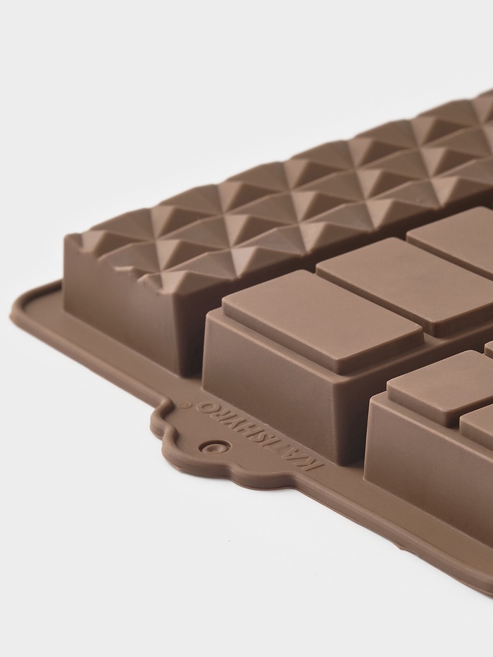 Здесь геометрия — не просто узор, а способ структурировать вкус. Квадраты задают ритм, полосы создают динамику, пирамиды добавляют объём. Вместе они превращают стандартное литьё в продуманную подачу, будь то домашний десерт или авторский подарок. Форма не навязывает идею — она даёт ровно столько свободы, сколько нужно для точного и выразительного результата.