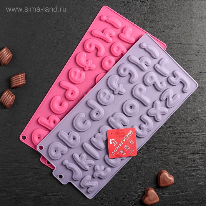 Форма для кондитерских украшений Доляна «Алфавит английский», силикон, 33.5×16.3 см, 26 ячеек (h=4 см), МИКС — Характеристики