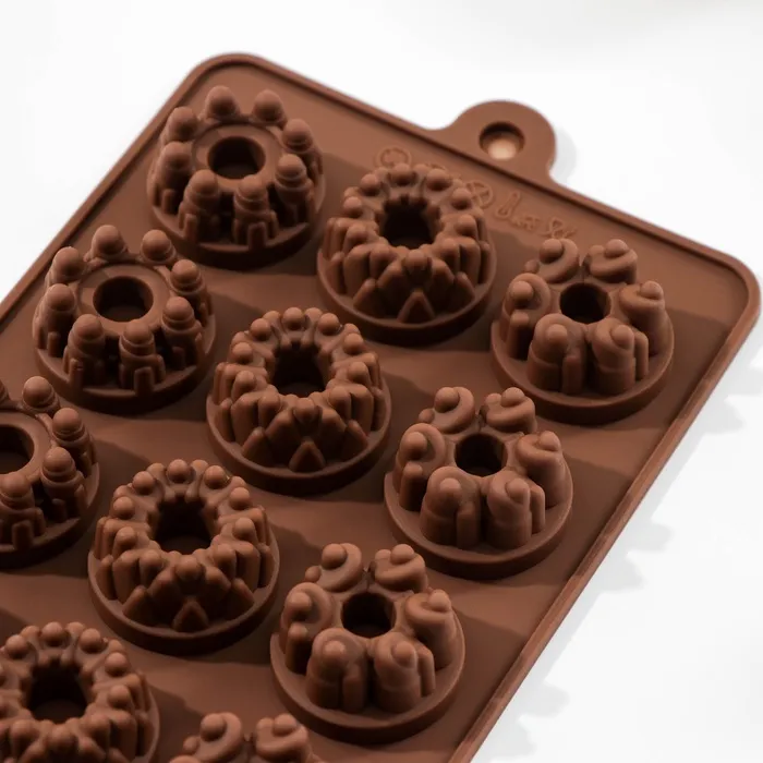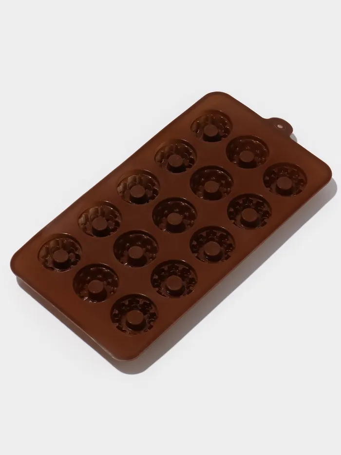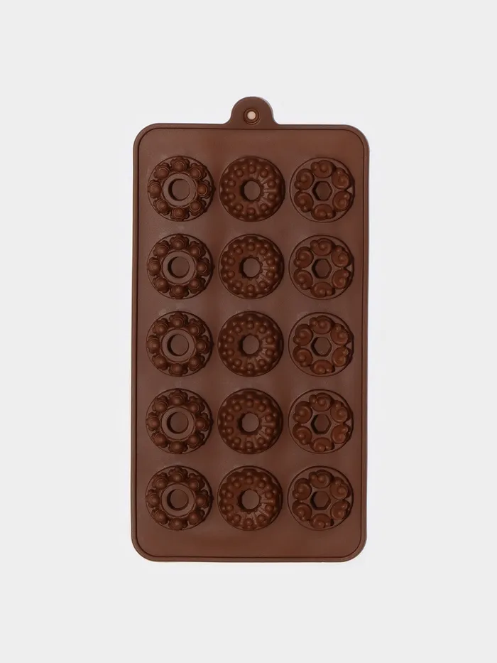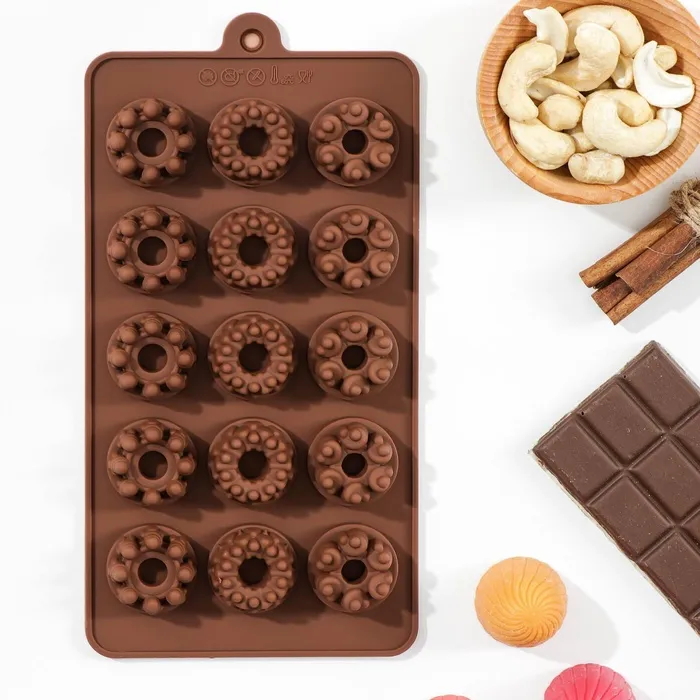 Форма для конфет и шоколада «Дольче», силикон, 20×11×1.8 см, 15 ячеек, коричневая — Характеристики