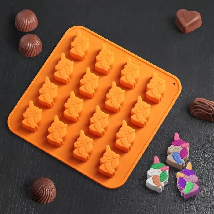 Форма для конфет и шоколада Доляна «Единорог», силикон, 18×18×1 см, 16 ячеек, МИКС — Характеристики