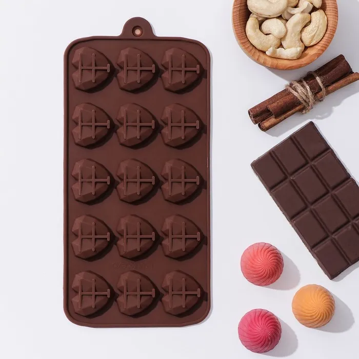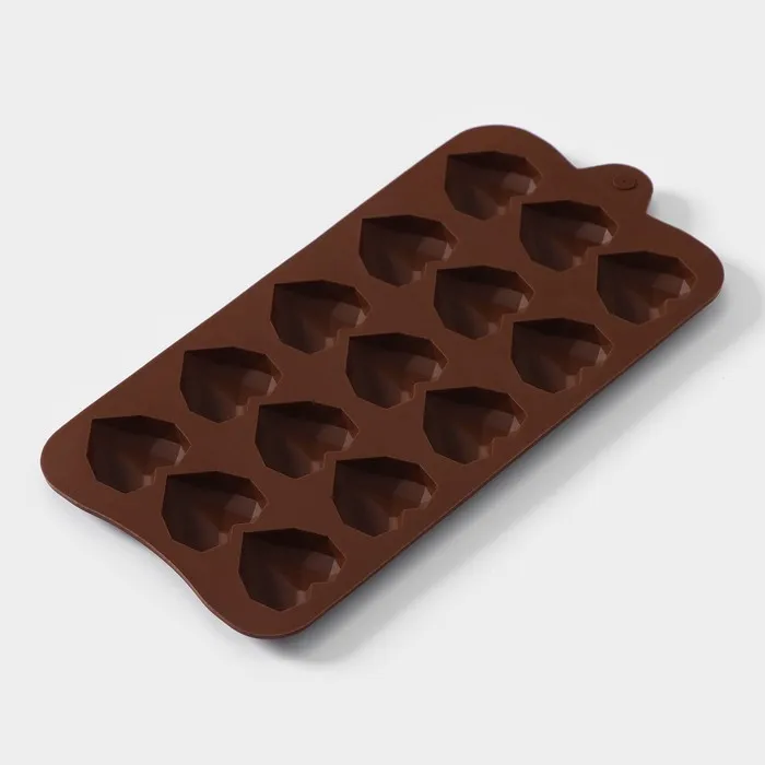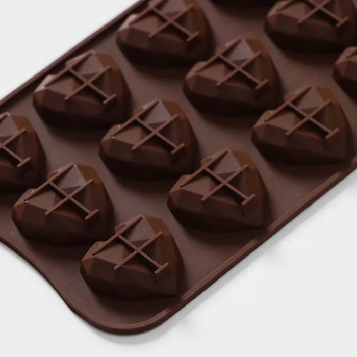 Форма для конфет и шоколада Доляна «Холодное сердце», 20.5×10×1.5 см, 15 ячеек, силикон, коричневая — Характеристики