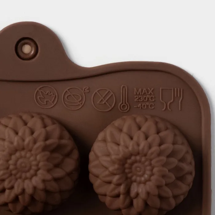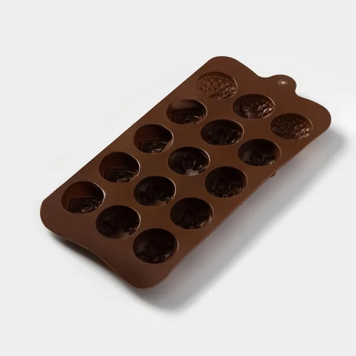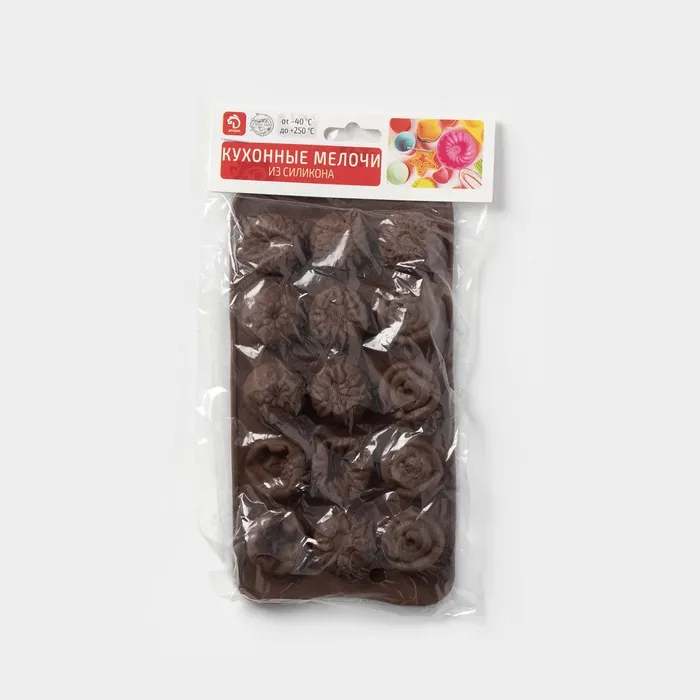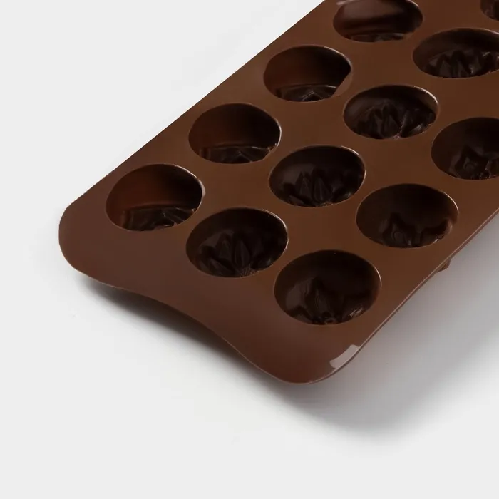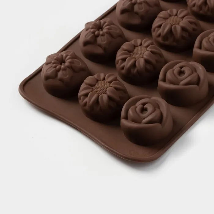 Форма для конфет и шоколада Доляна «Клумба цветов», силикон, 20.5×10.5×1.5 см, 15 ячеек, коричневая — Характеристики