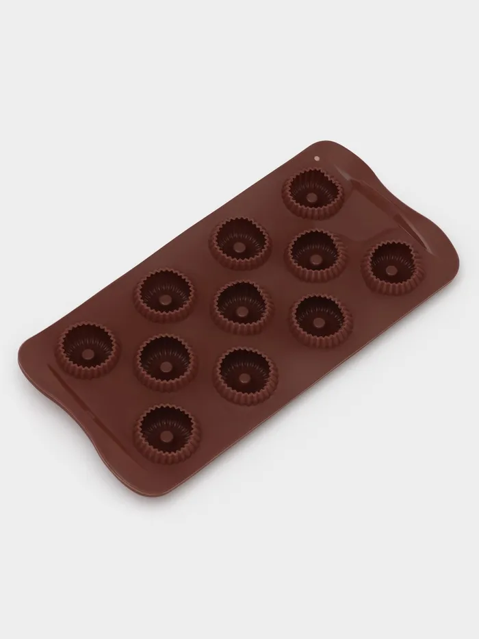 Форма для конфет и шоколада Доляна «Колечко.Риб», силикон, 21×10.5×1.8 см, 11 ячеек, коричневая — Характеристики