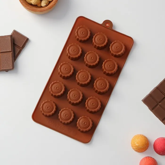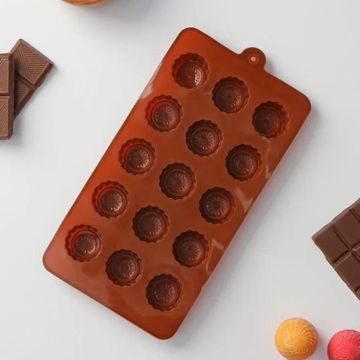Форма для конфет и шоколада Доляна «Конди», силикон, 20×11×1.5 см, 15 ячеек (2.5×2.5×1.5 см), коричневая — Характеристики