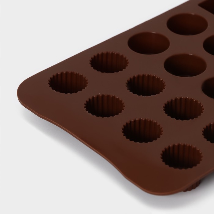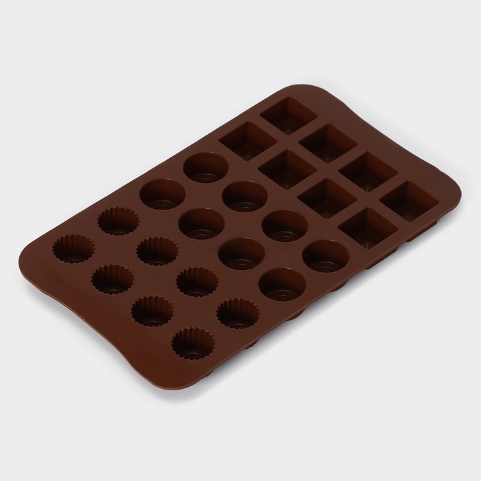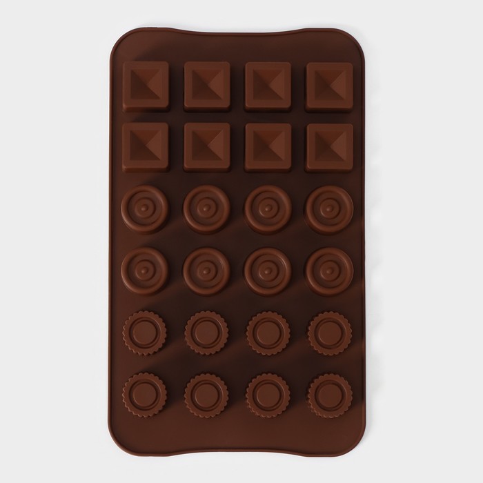 Форма для конфет и шоколада Доляна «Коробка конфет», силикон, 23.2×13.8×0.5 см, 24 ячейки, коричневая — Характеристики