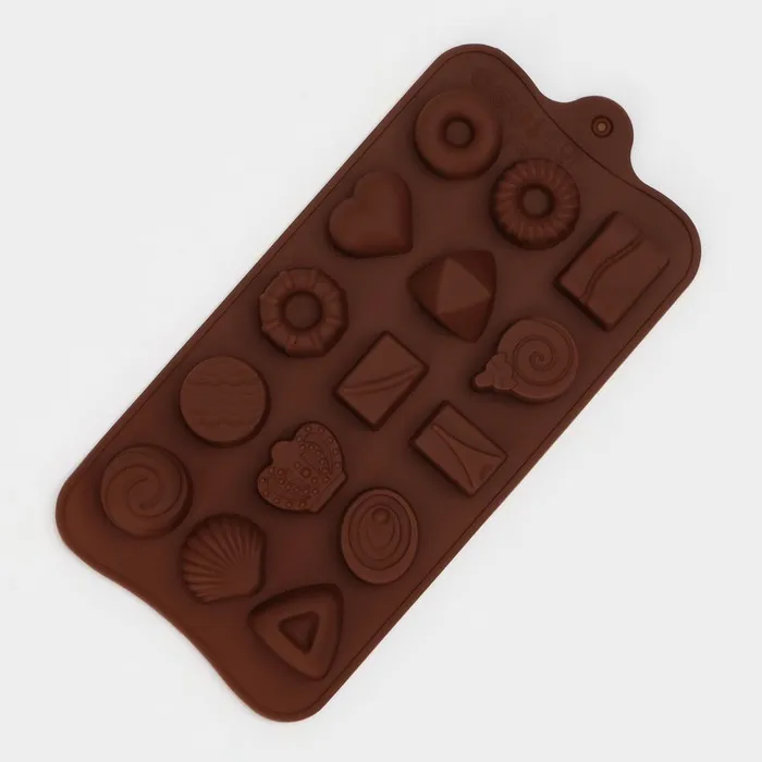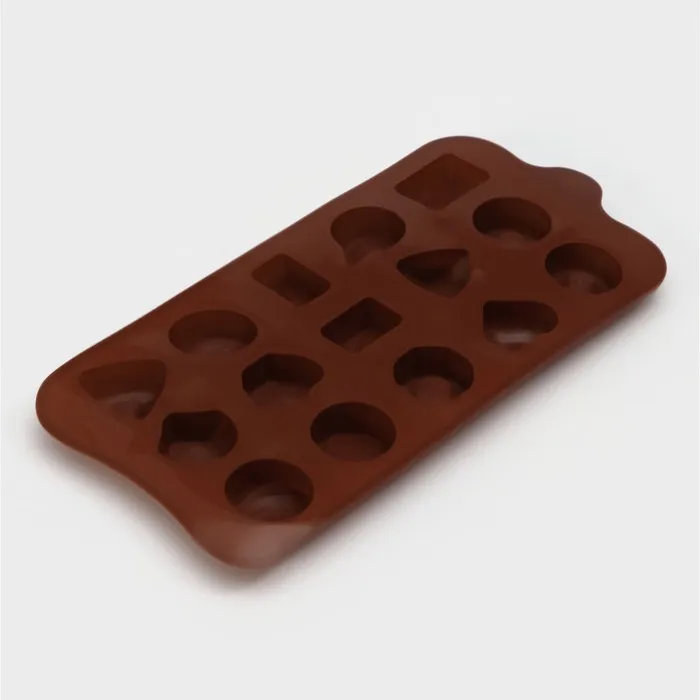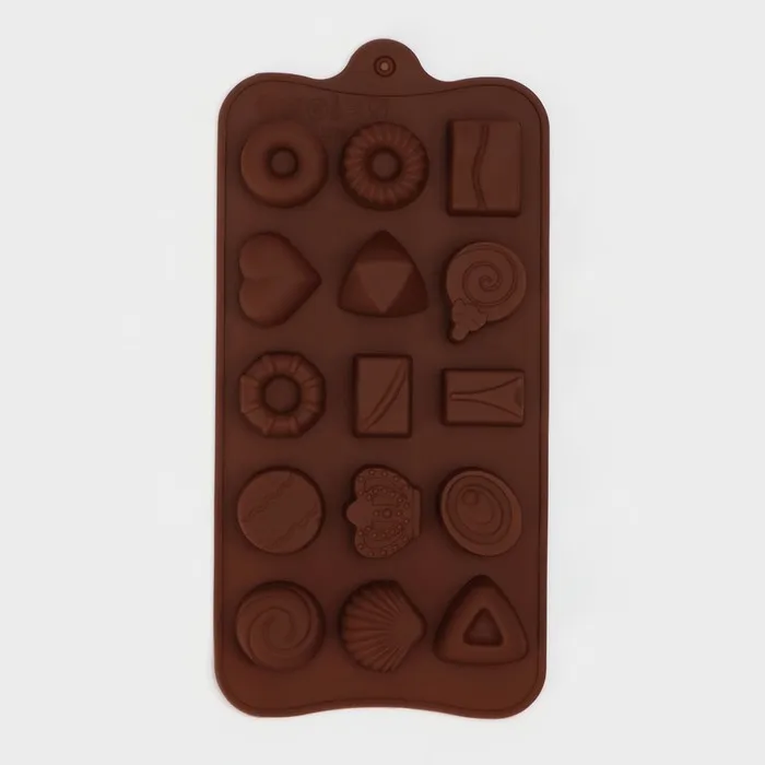 Форма для конфет и шоколада Доляна «Лакомство», силикон, 21×10.4 см, 15 ячеек, коричневая — Характеристики