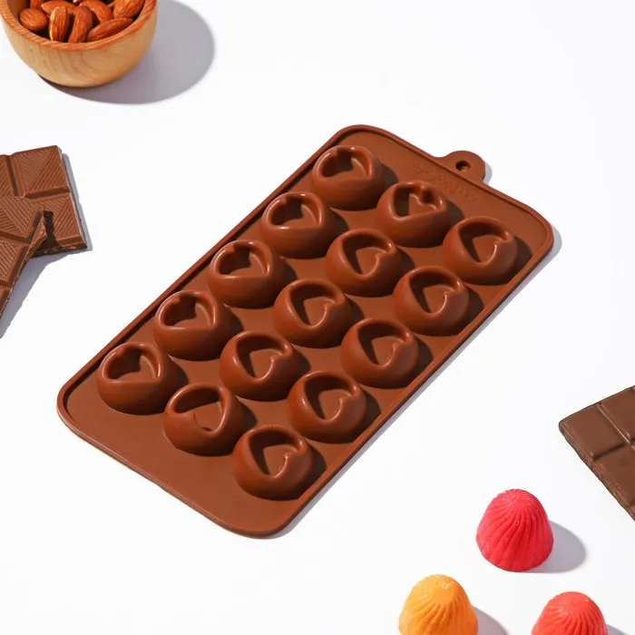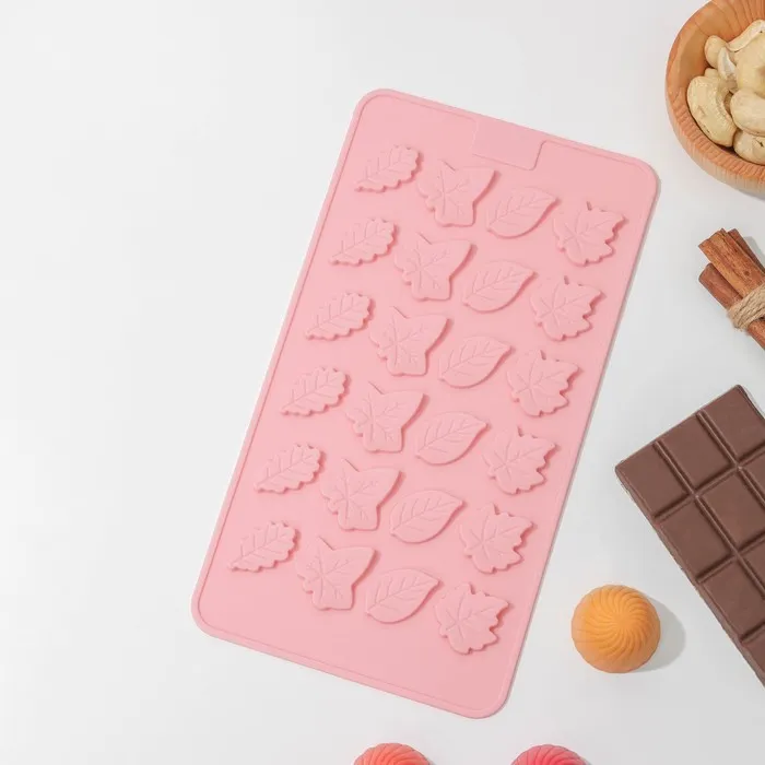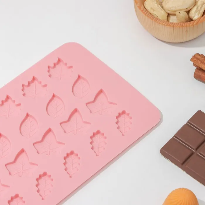Форма для конфет и шоколада Доляна «Листики», силикон, 21.2×11.5 см, 24 ячейки, розовая — Характеристики
