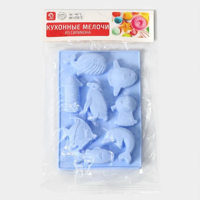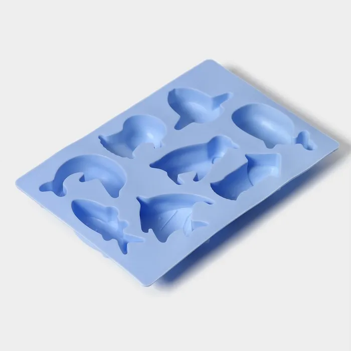 Форма для конфет и шоколада Доляна «Морская», силикон, 14×9.5 см, 8 ячеек, голубая — Характеристики