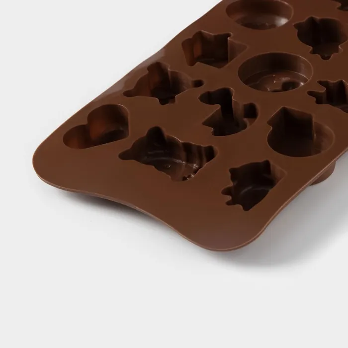 Форма для конфет и шоколада Доляна «Счастье есть», силикон, 21×11×1.5 см, 15 ячеек, коричневый — Характеристики