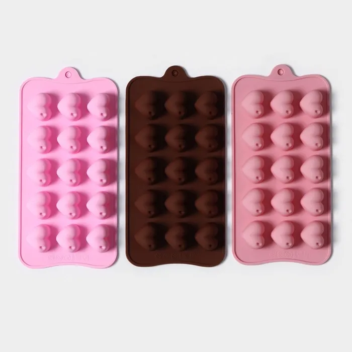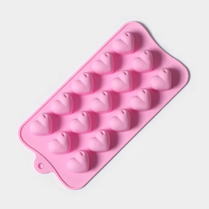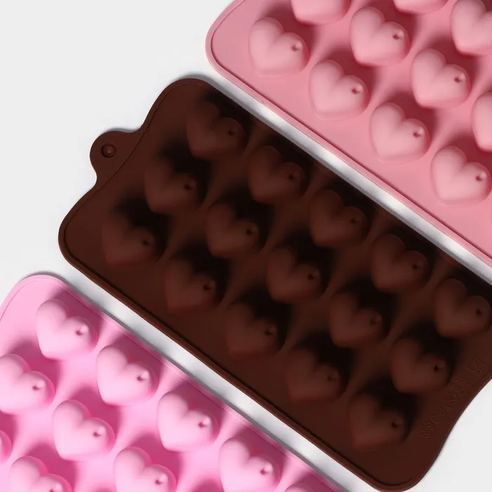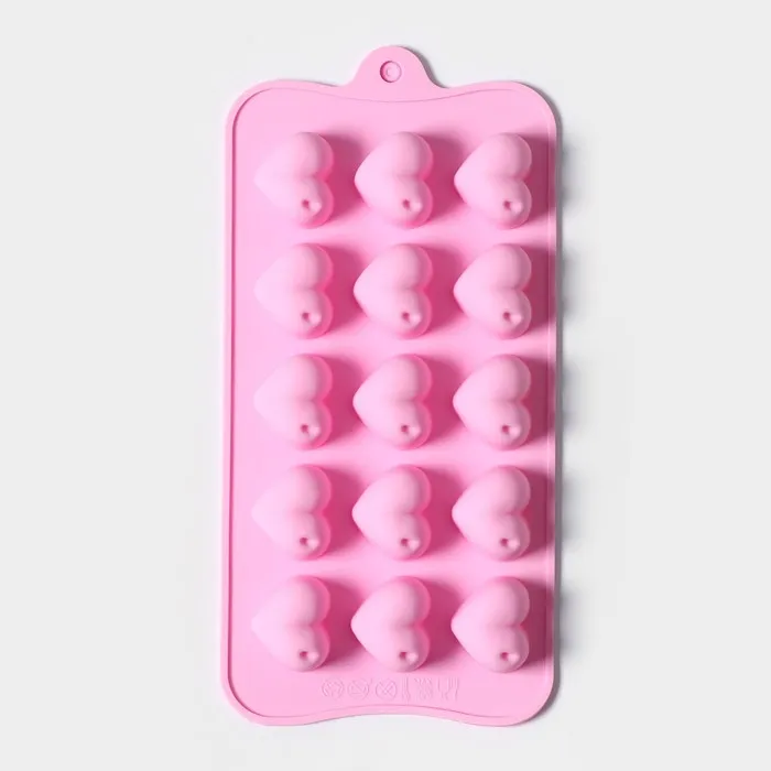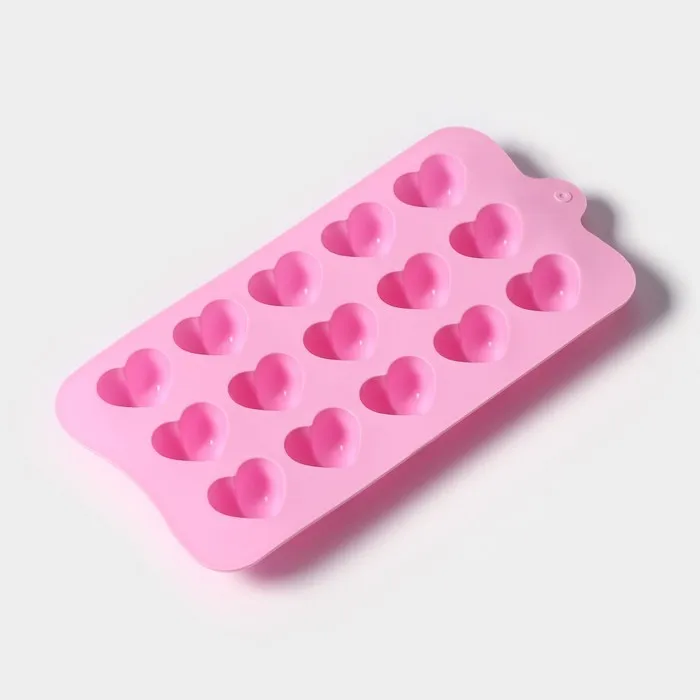 Форма для конфет и шоколада Доляна «Сердечки», силикон, 19.5×10×1.8 см, 15 ячеек (2.7×2.3 см), МИКС — Характеристики