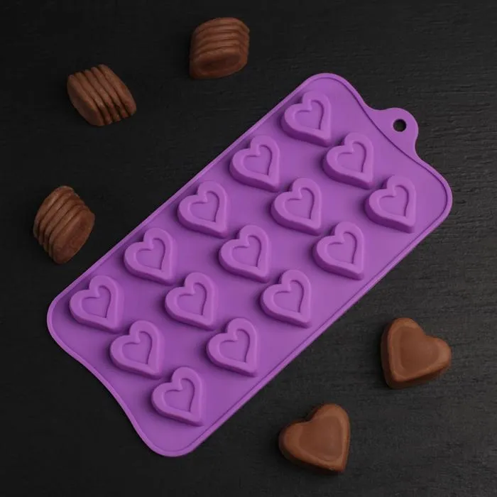 Форма для конфет и шоколада Доляна «Сердечко», силикон, 21×10 см, 15 ячеек (2.7×2.8 см), МИКС — Характеристики