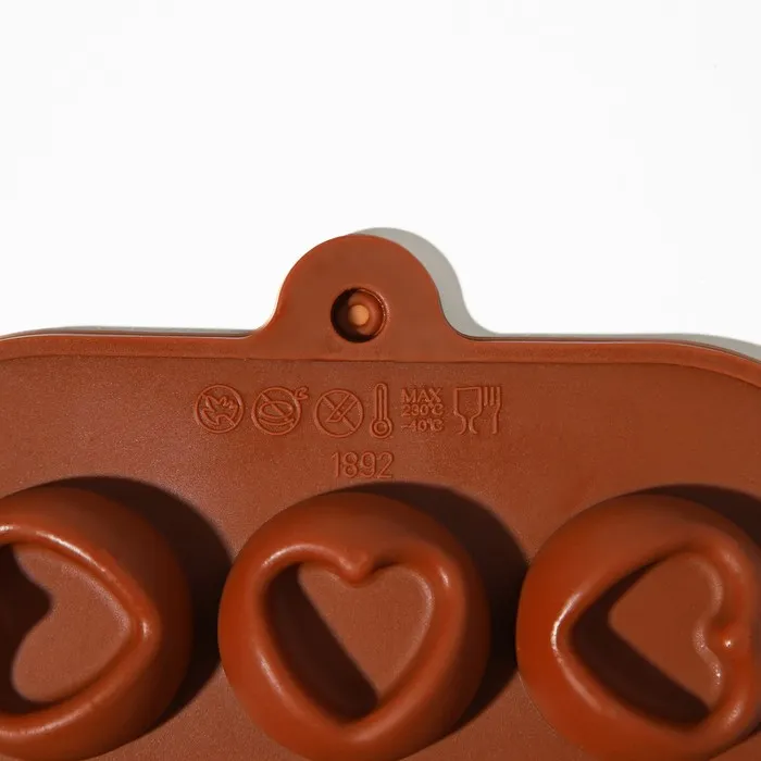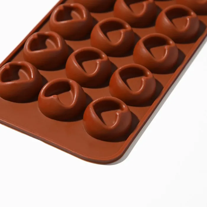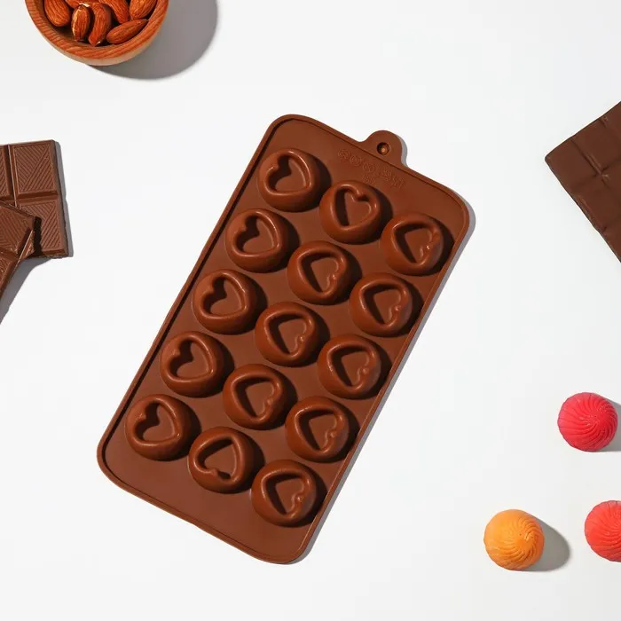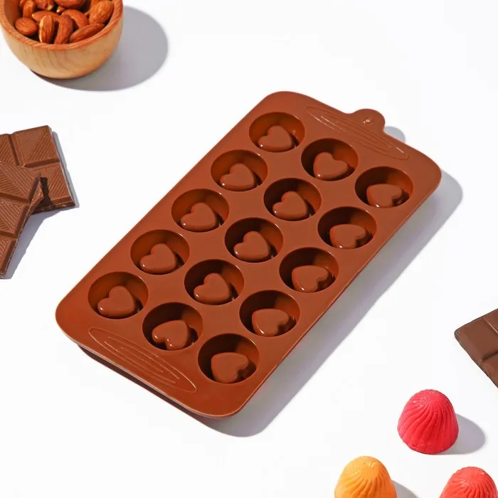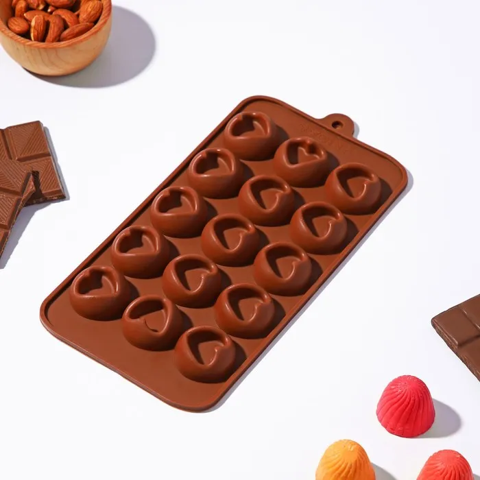 Форма для конфет и шоколада Доляна «Сердце», силикон, 23,2×12×1 см, 15 ячеек (d=3,3 см), цвет коричневый — Характеристики