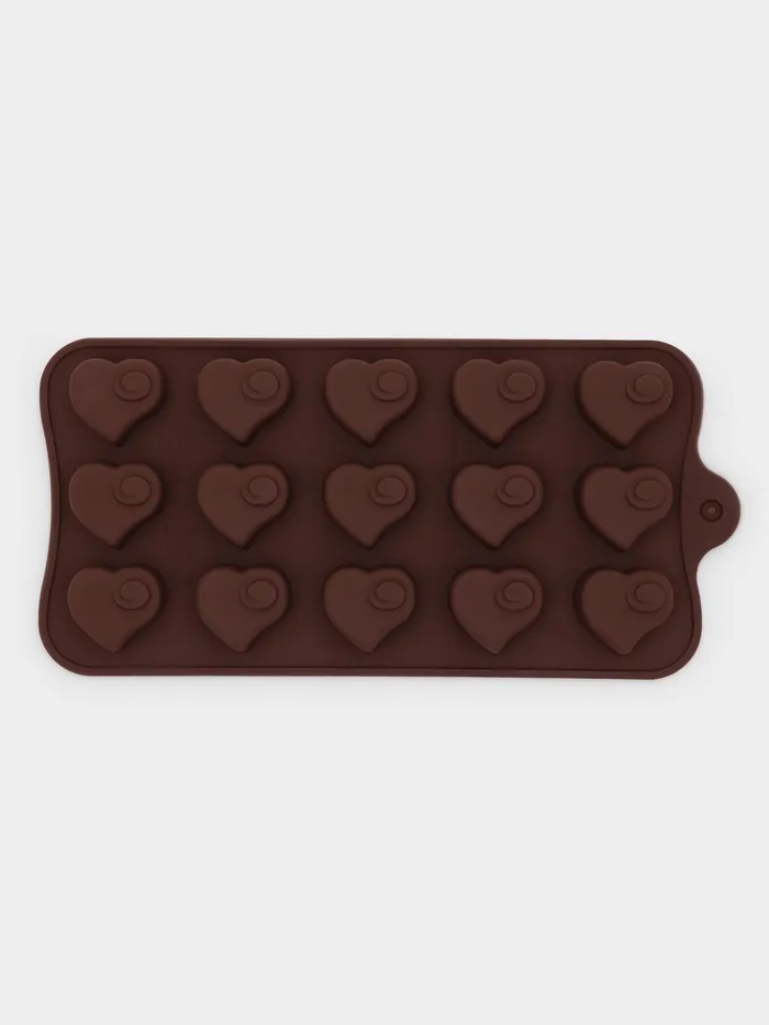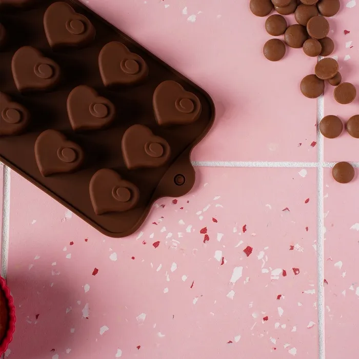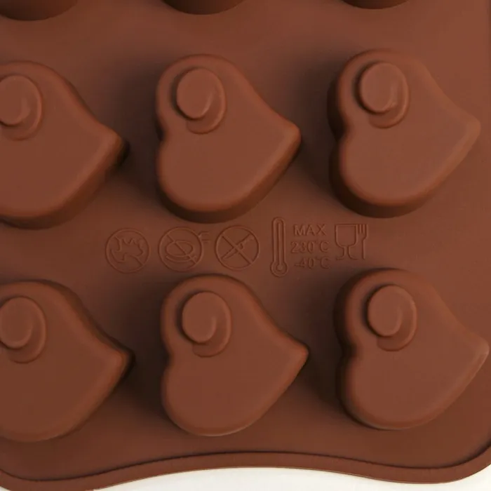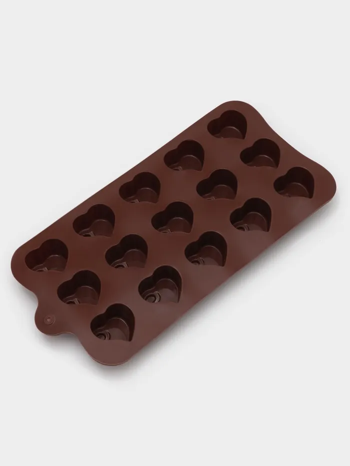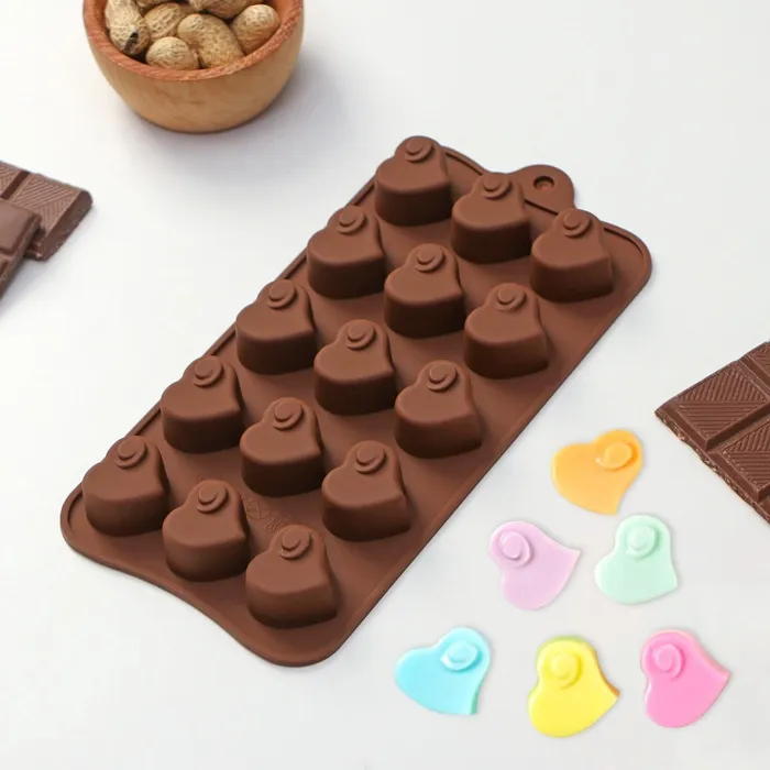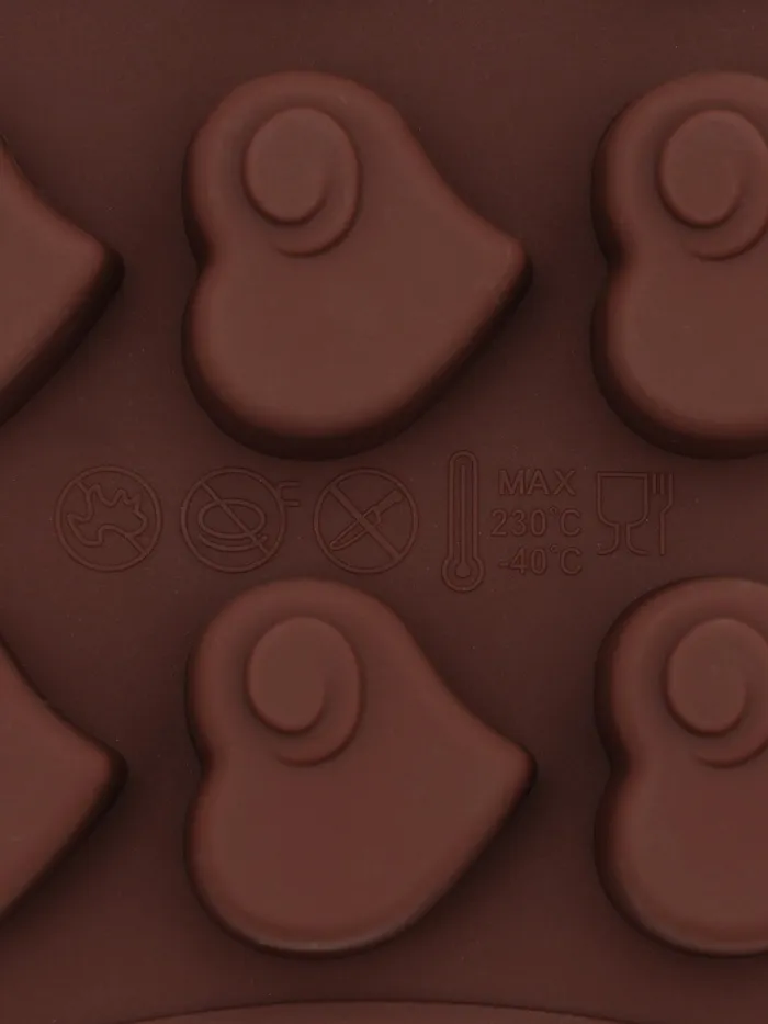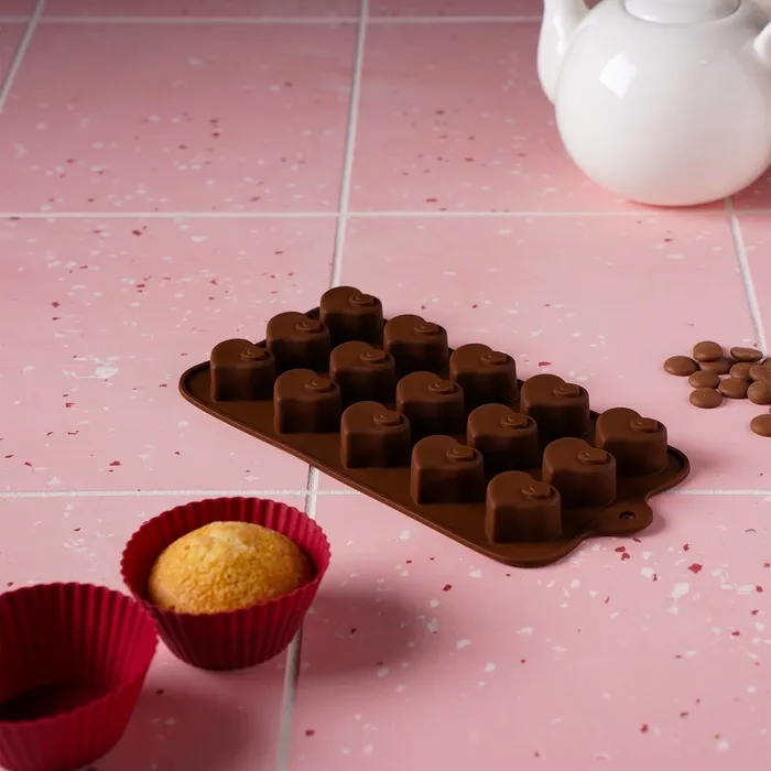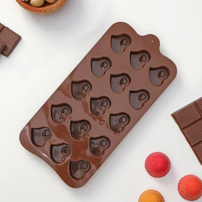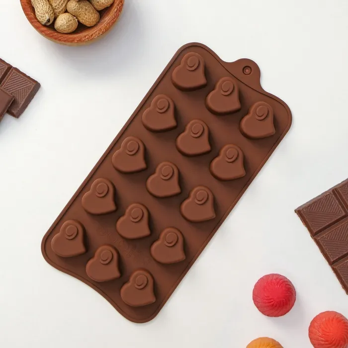 Форма для конфет и шоколада Доляна «Сердцеедка», силикон, 21.5×11×1.5 см, 15 ячеек, коричневая — Характеристики