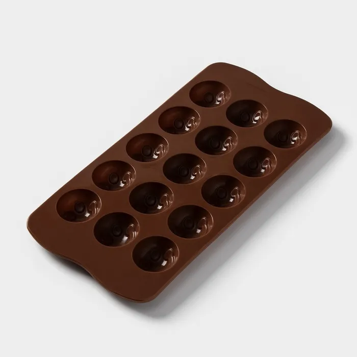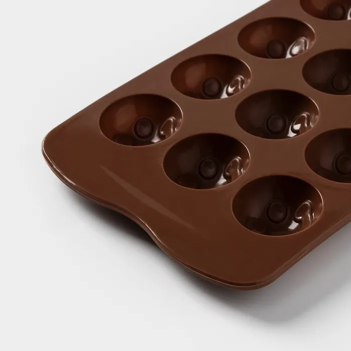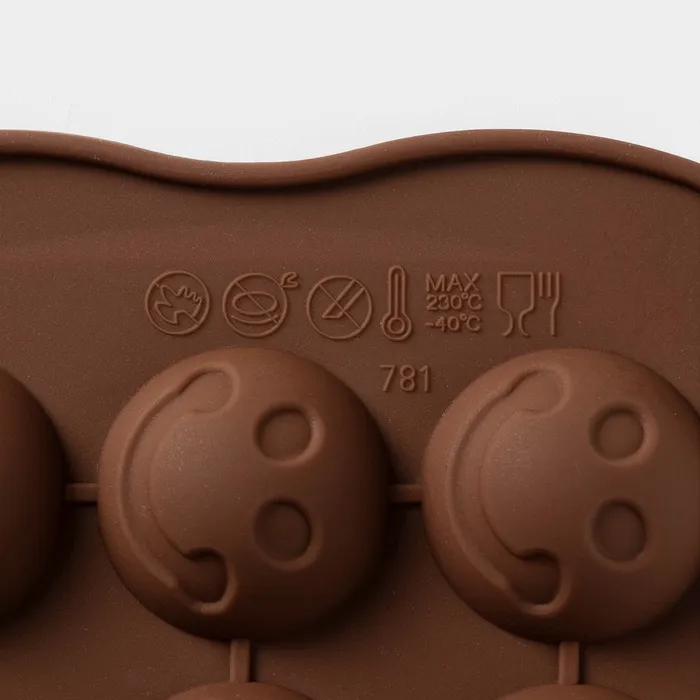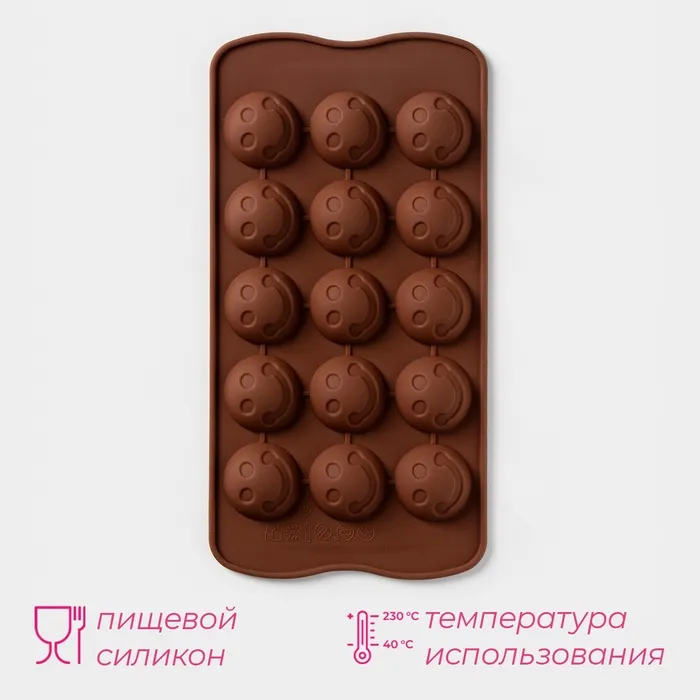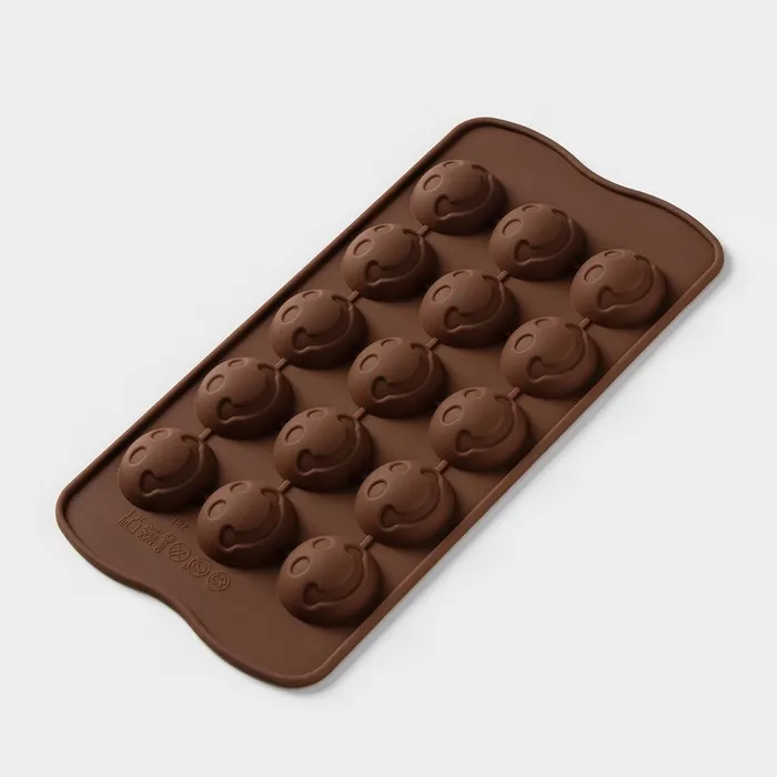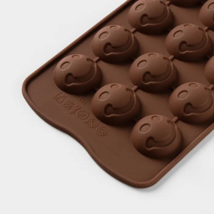 Форма для конфет и шоколада Доляна «Шарик смайл», силикон, 20×10 см, 15 ячеек, коричневая — Характеристики