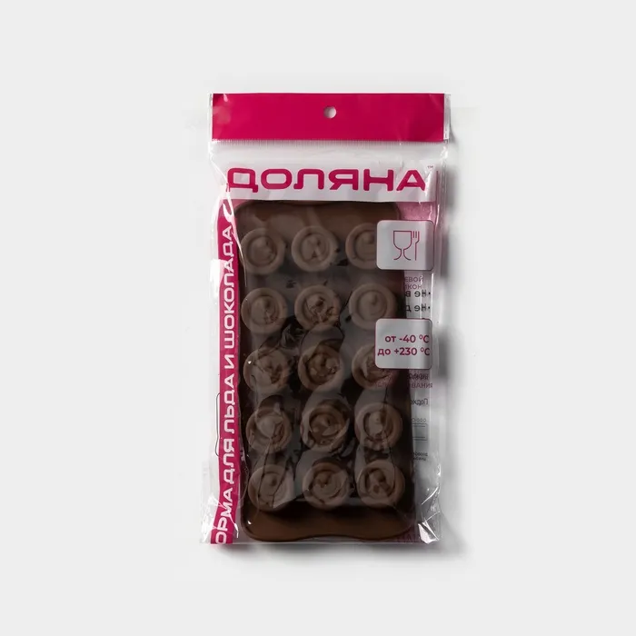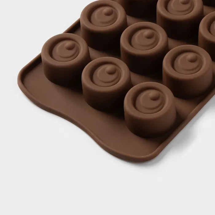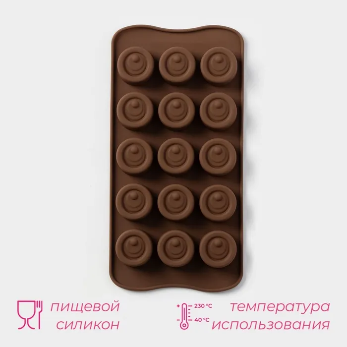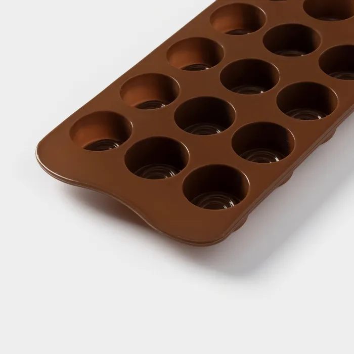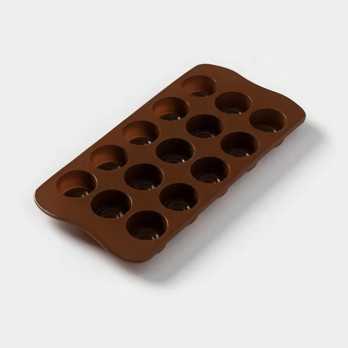 Форма для конфет и шоколада Доляна «Шоколадное удовольствие», силикон, 22×10×1.5 см, 15 ячеек (2.8×2.2 см), коричневая — Характеристики