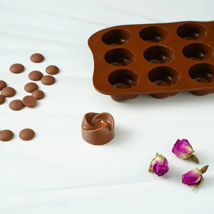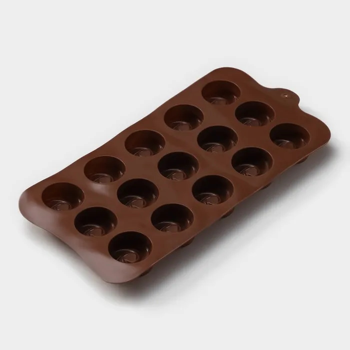 Форма для конфет и шоколада Доляна «Завиток», силикон, 21.5×11.5 см, 15 ячеек (d=2.8 см), коричневая — Характеристики