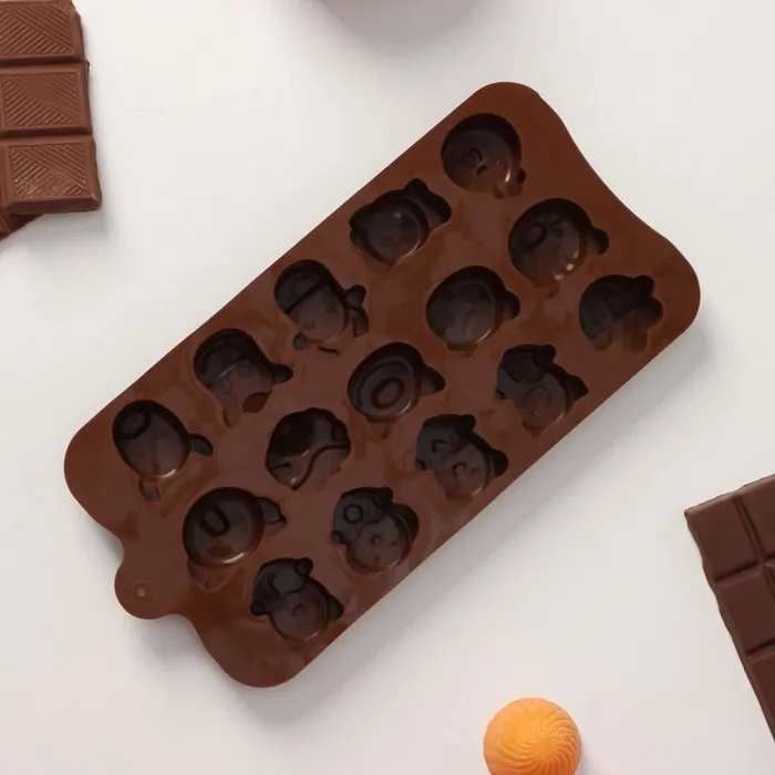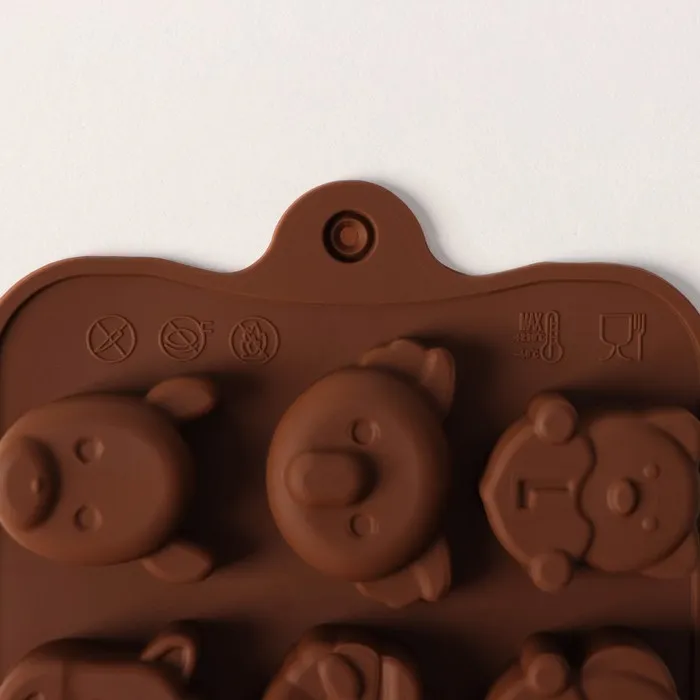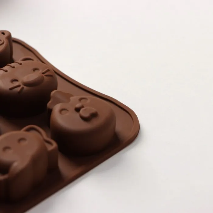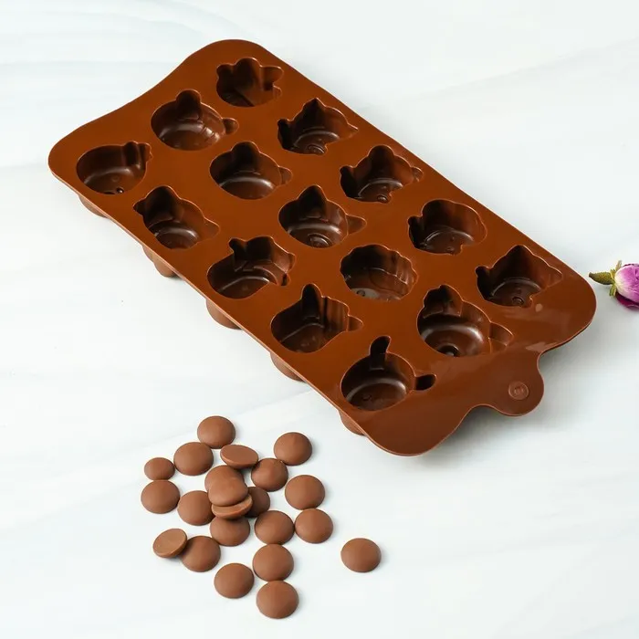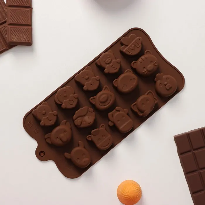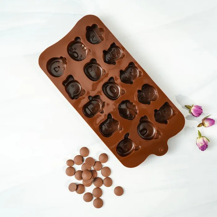 Форма для конфет и шоколада Доляна «Животные. Любовь», силикон, 20.6×10.5×1.4 см, 15 ячеек, коричневая — Характеристики