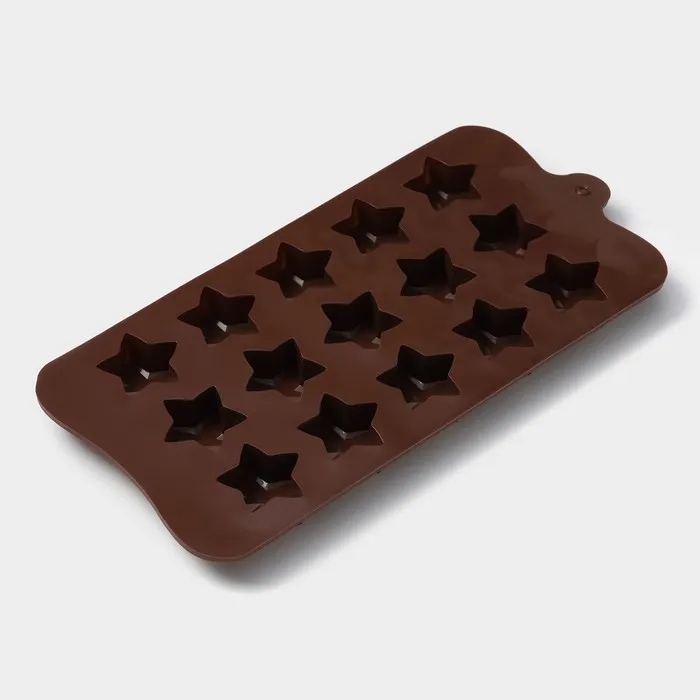 Форма для конфет и шоколада Доляна «Звездочёт», силикон, 20.5×10.5×1.5 см, 15 ячеек, коричневая — Характеристики