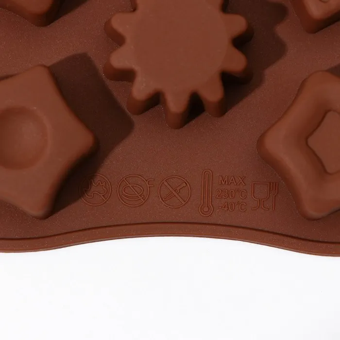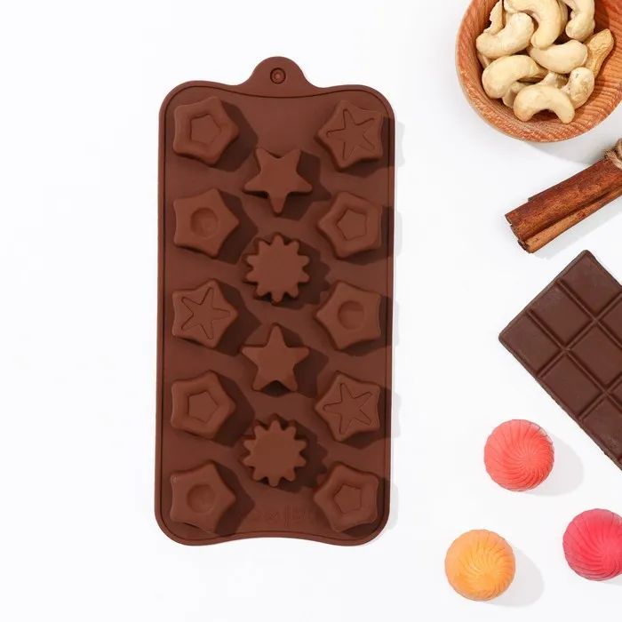 Форма для конфет и шоколада Доляна «Звёзды», 21×11×1,5 см, 14 ячеек (3×3 см), цвет коричневый — Характеристики