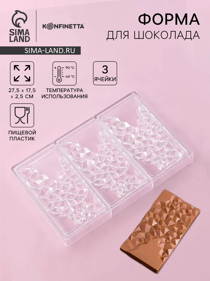 Форма для конфет и шоколада «Конфи», 20×12×2.5 см, 10 ячеек 3×1.5 см, прозрачная — Характеристики