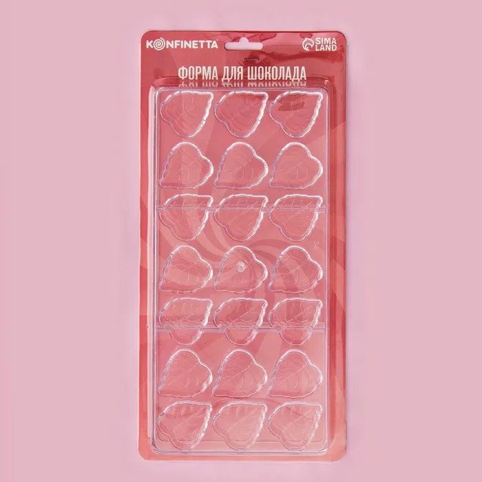 Форма для конфет и шоколада KONFINETTA «Листочки», 27.5×13.5×2.5 см, 21 ячейка 4×3×0.8 см, прозрачная — Характеристики