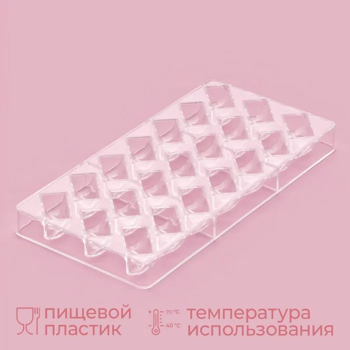 Форма для конфет и шоколада KONFINETTA «Плетёный батон», 27.5×17.5×2.5 см, 21 ячейка 3.5×1.5×1.5 см, прозрачная — Характеристики
