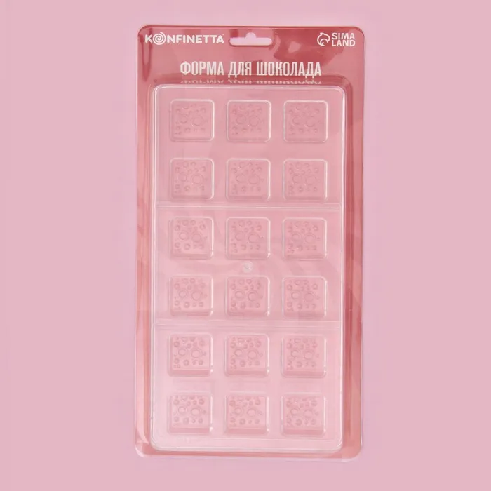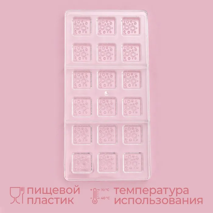Форма для конфет и шоколада KONFINETTA «Пористый шоколад», 33×16.5×2.5 см, 18 ячеек 3×3×1 см, прозрачная — Характеристики