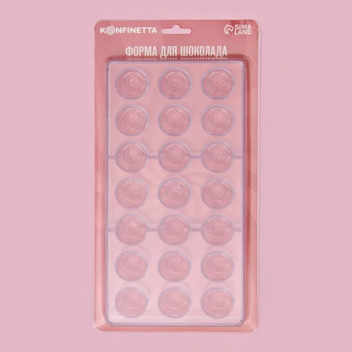 Форма для конфет и шоколада KONFINETTA «Роза», 27.5×13.5×3 см, 21 ячейка, прозрачная — Характеристики