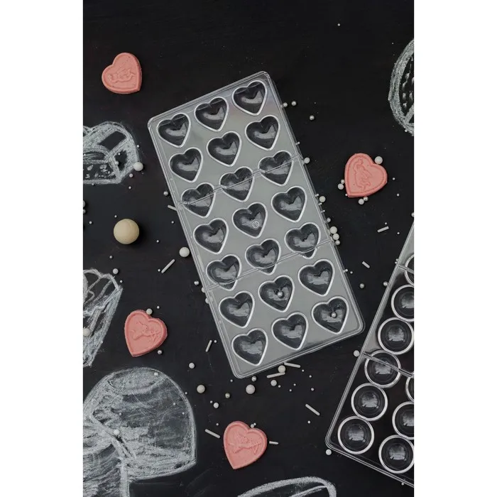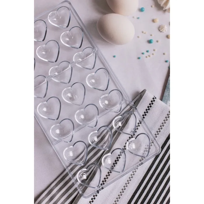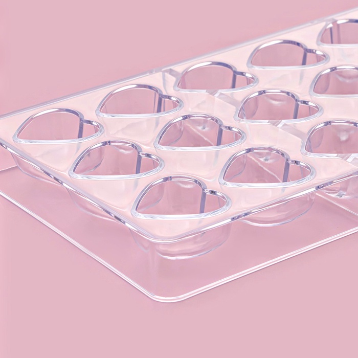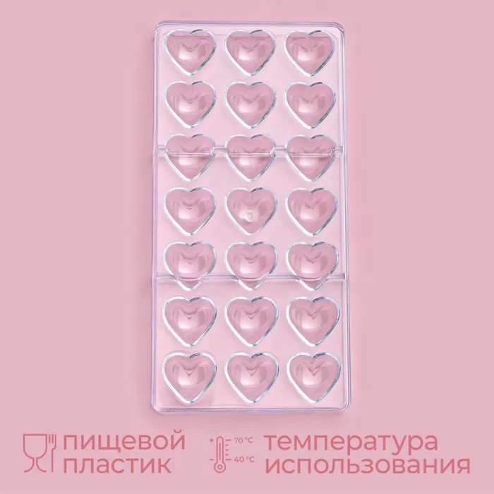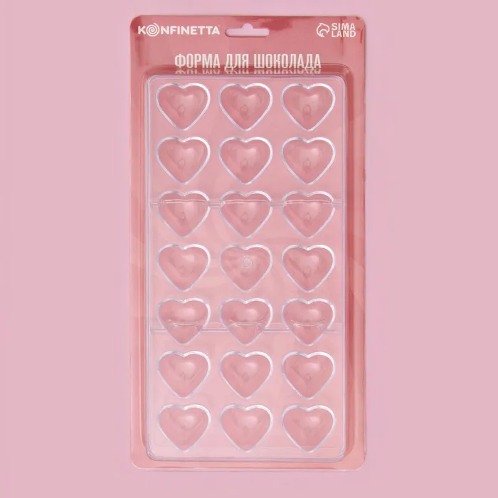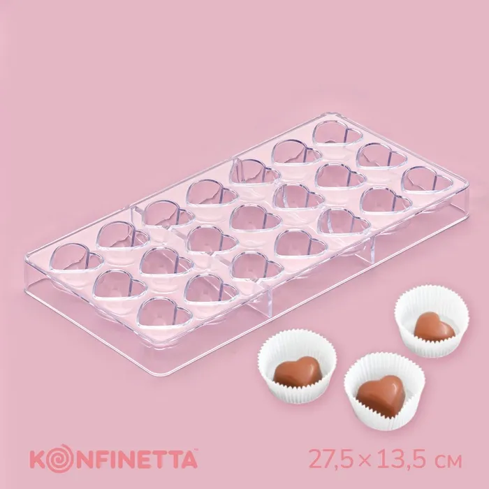 Форма для конфет и шоколада KONFINETTA «Сердца», пластик, 27.5×13.5 см, 21 ячейка (2×3 см), прозрачный — Характеристики