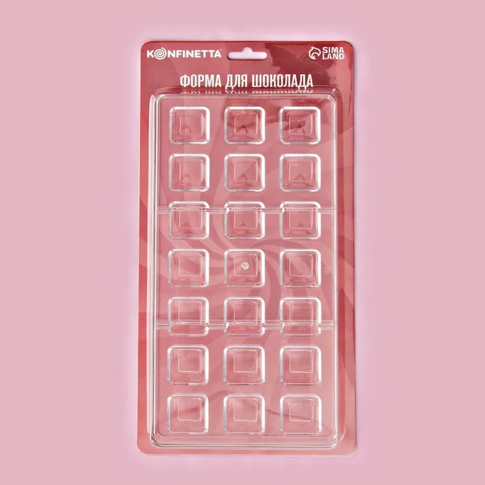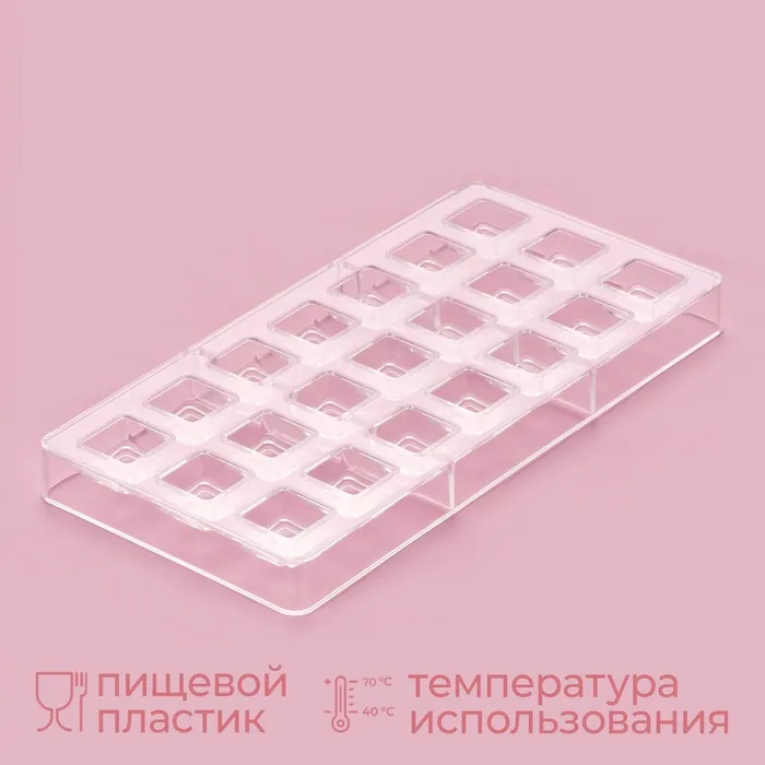 Форма для конфет и шоколада KONFINETTA «Тоффи. Квадрат», 27.5×13.5×2.5 см, 21 ячейка 2.5×1.5 см, прозрачная — Характеристики