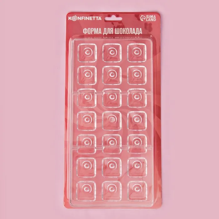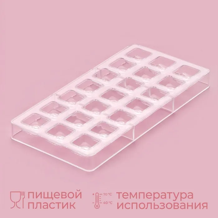 Форма для конфет и шоколада KONFINETTA «Восход», 27.5×17.5×2.5 см, 21 ячейка 2.5×2.5×1 см, прозрачная — Характеристики