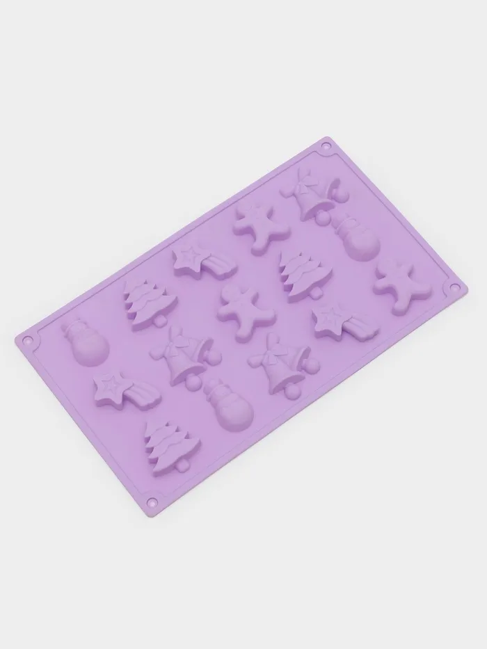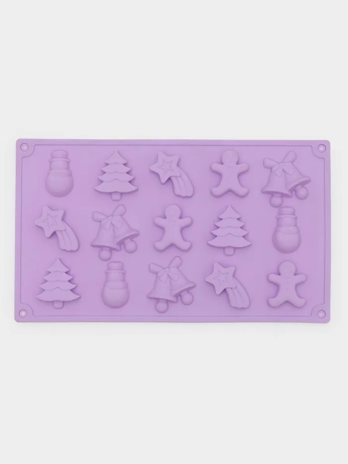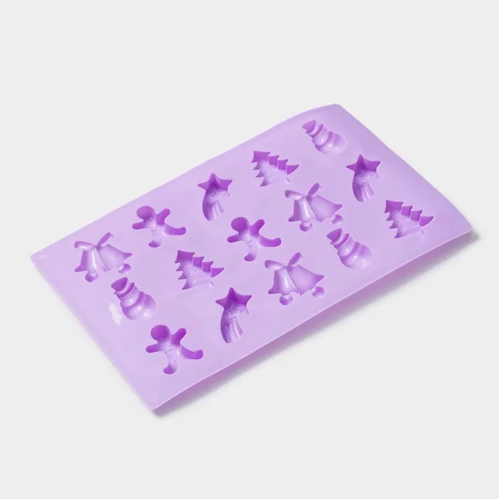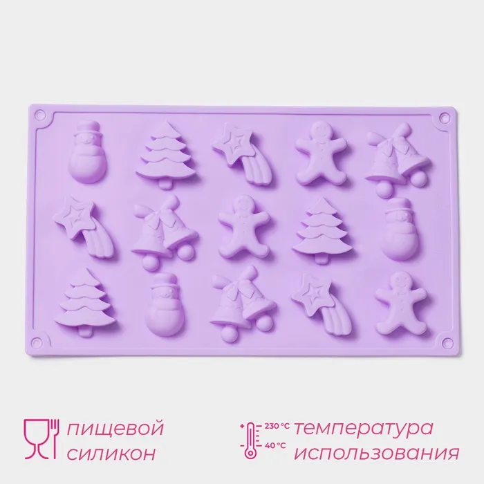 Форма для конфет и шоколада новогодняя Доляна «Ёлочки - иголочки», силикон, 30×17.3×1.3 см, 15 ячеек, сиреневая — Характеристики